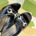 GG Women's Horsebit mid-heel slide sandal in glossy black leather