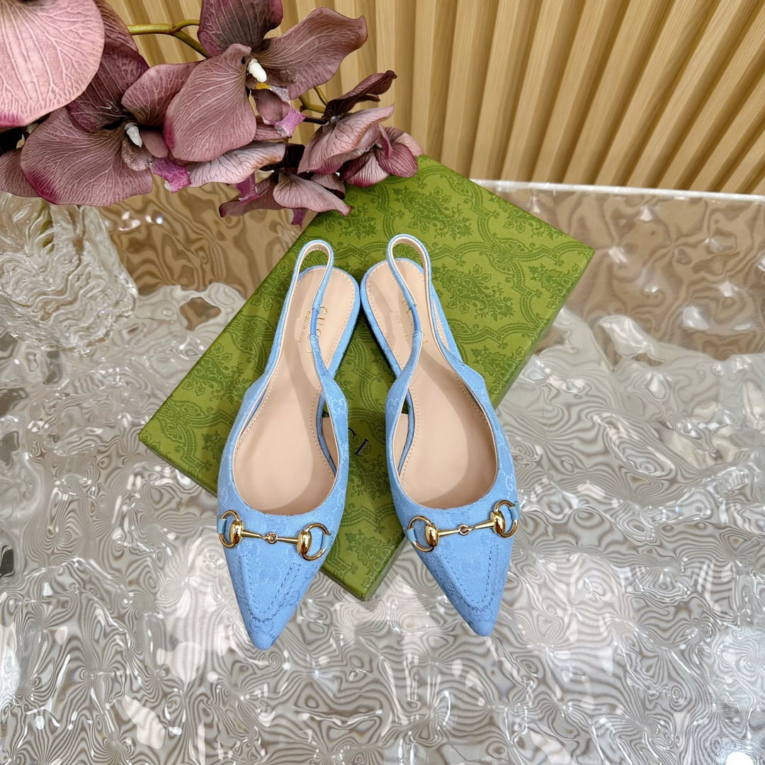 WOMEN'S SLIDE SANDAL WITH GG CROSS SKY CANVAS