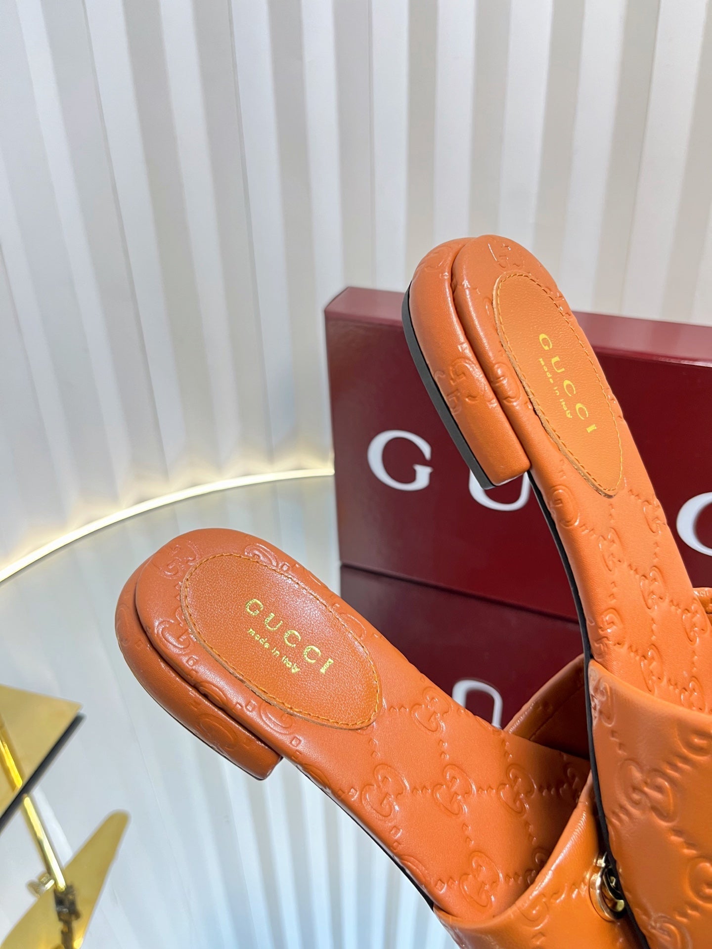GC Double G Slide Sandals Rosso Ancora Red Embossed Leather 294634