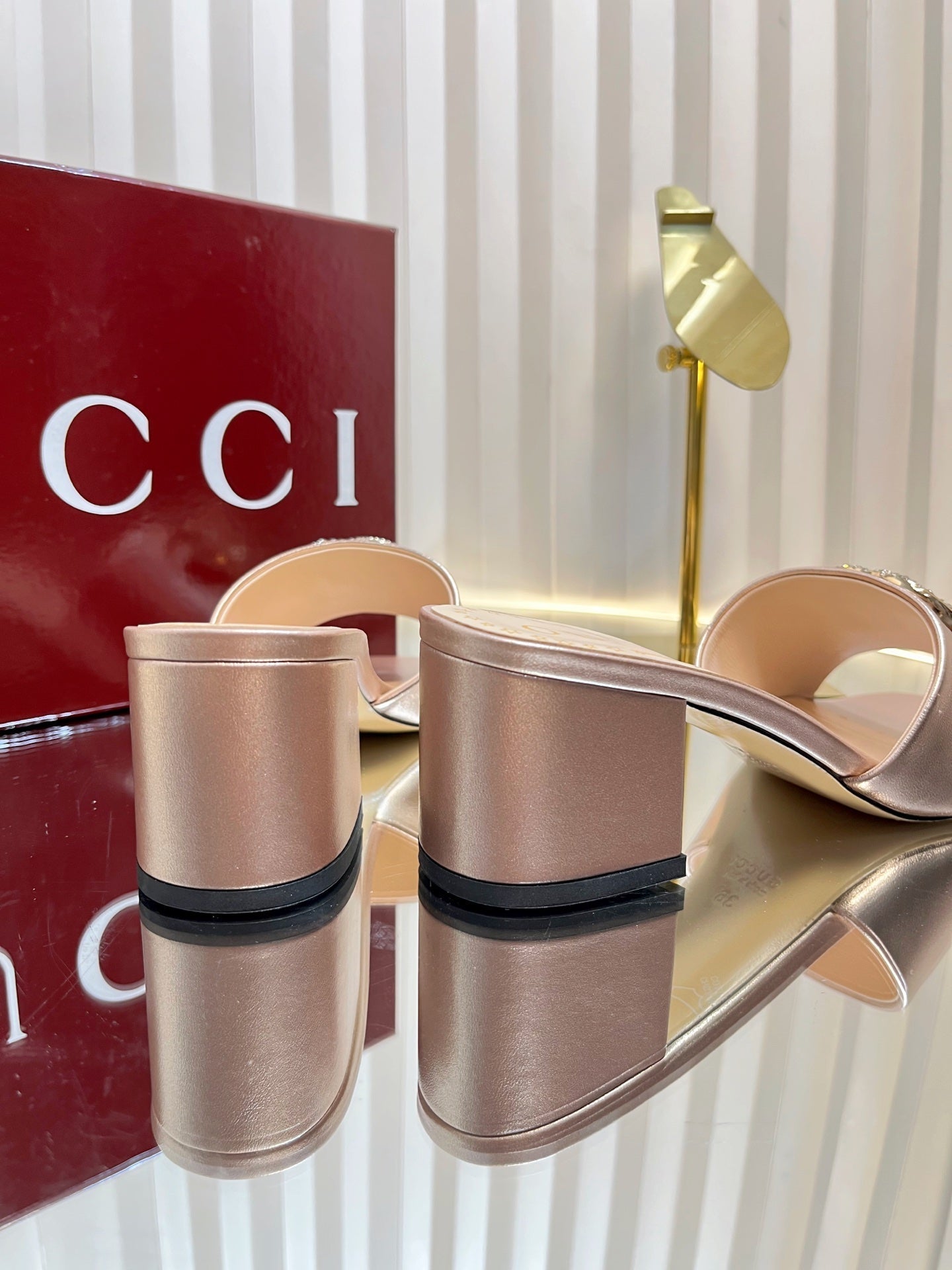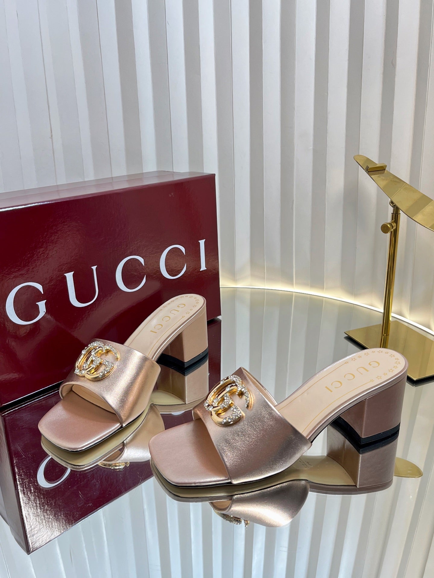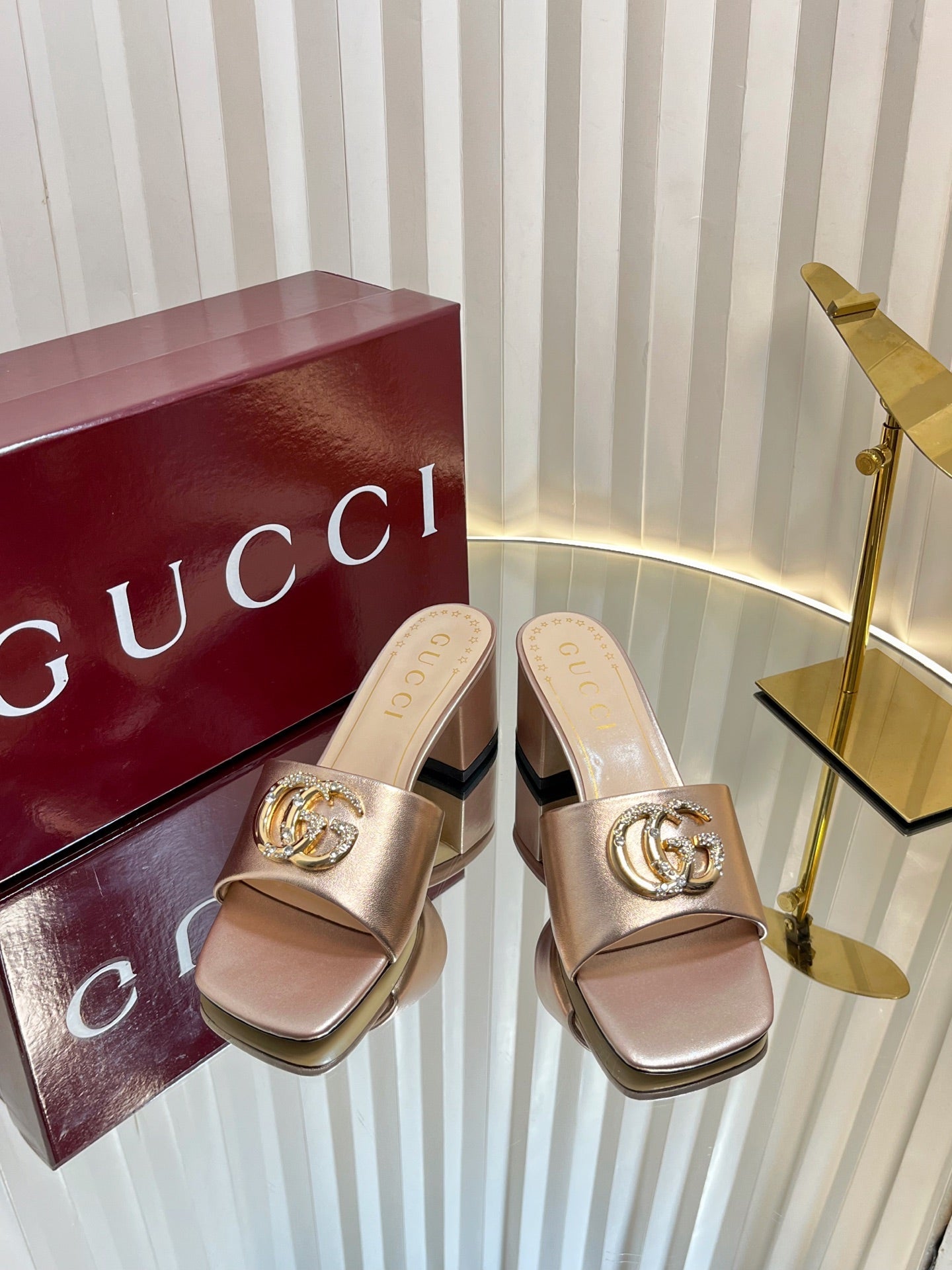 GC 2025 Double G High Heel Sandals Gold Sheepskin 292472