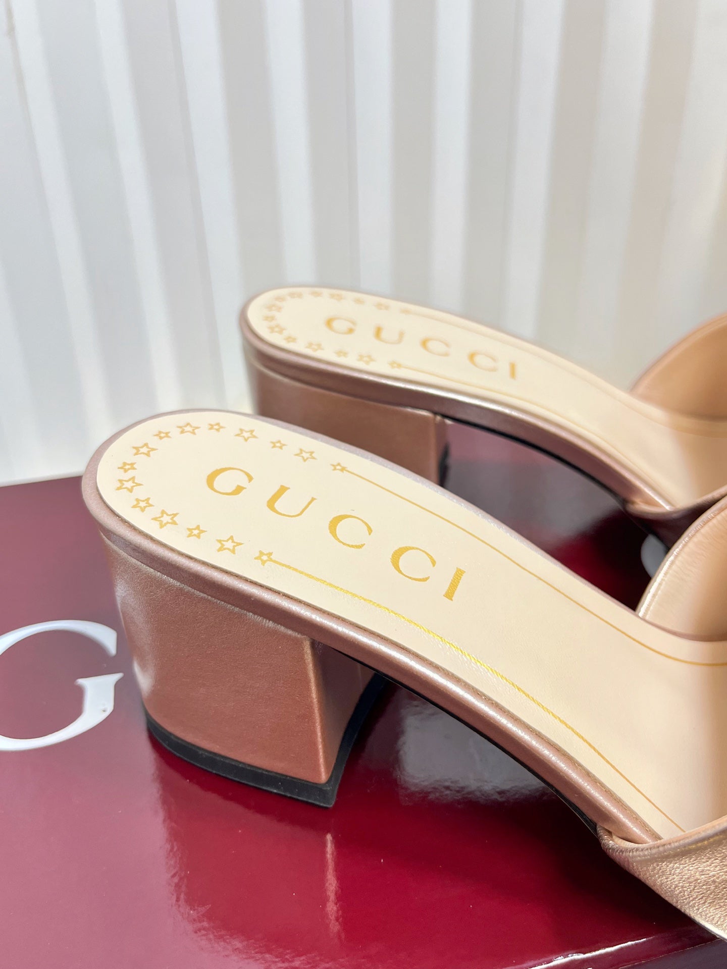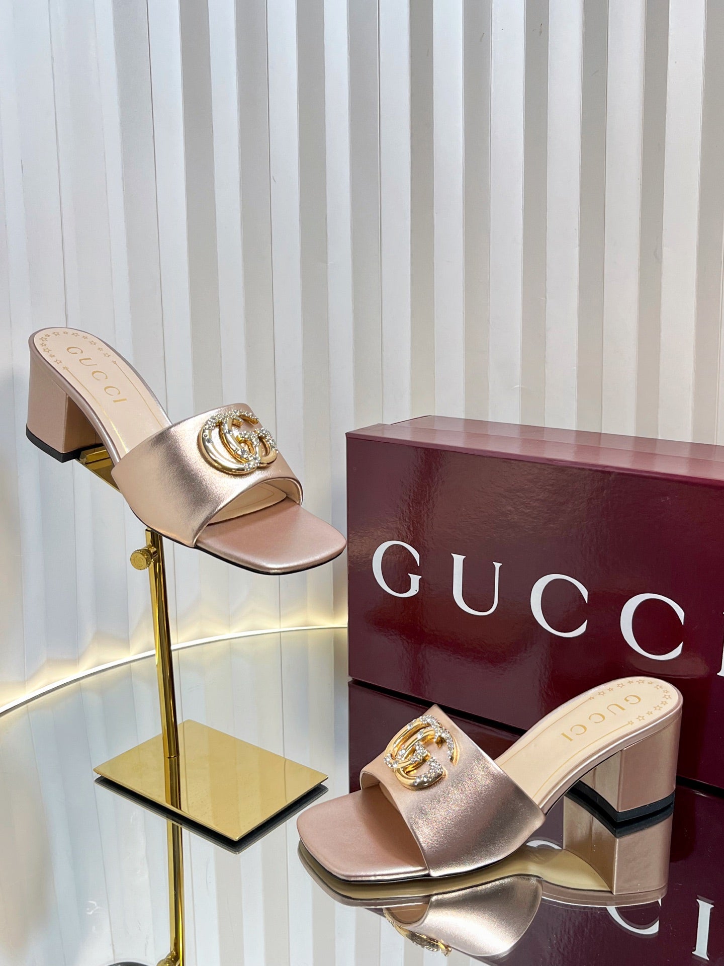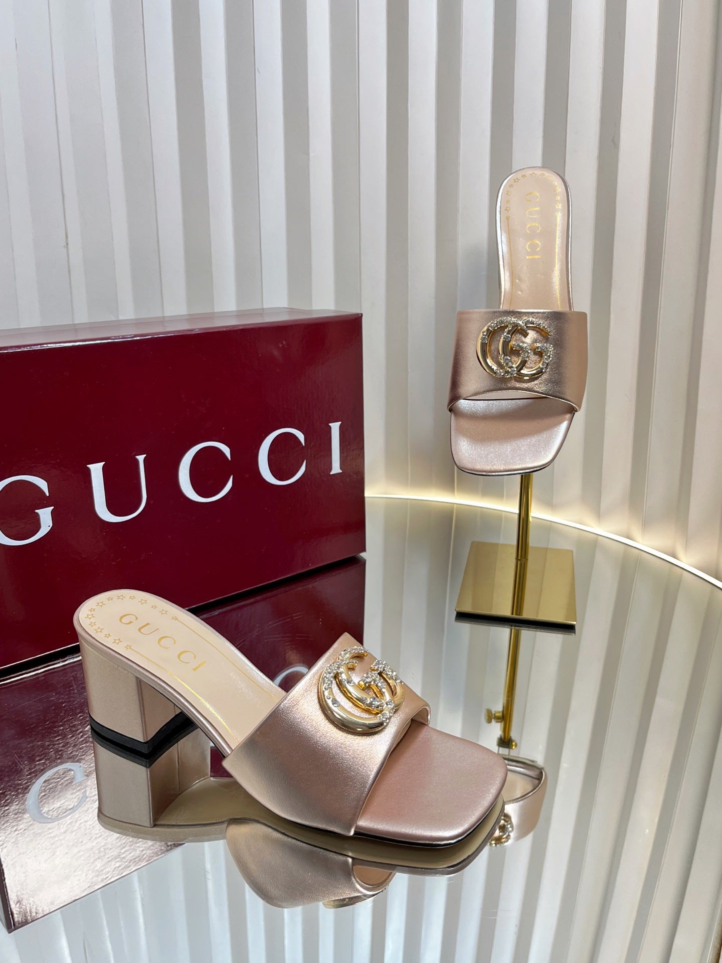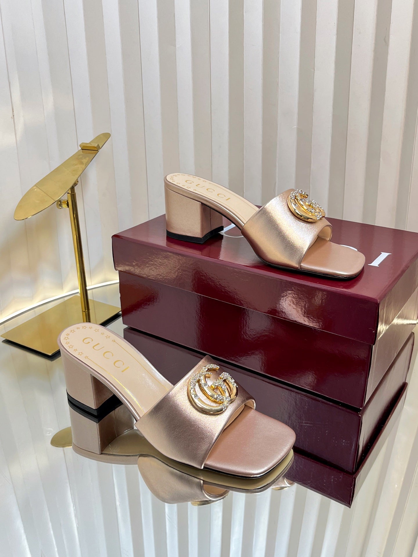 GC 2025 Double G High Heel Sandals Gold Sheepskin 292472
