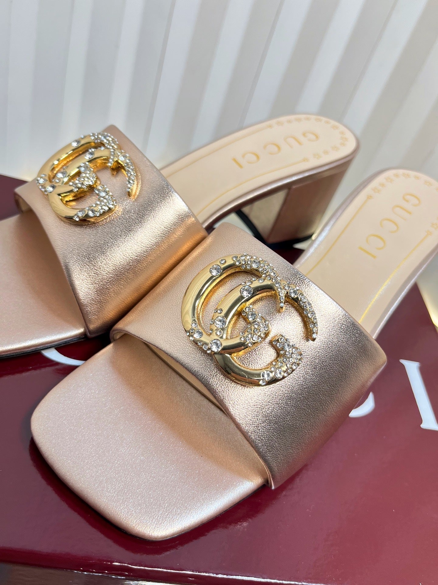GC 2025 Double G High Heel Sandals Red Sheepskin 292470