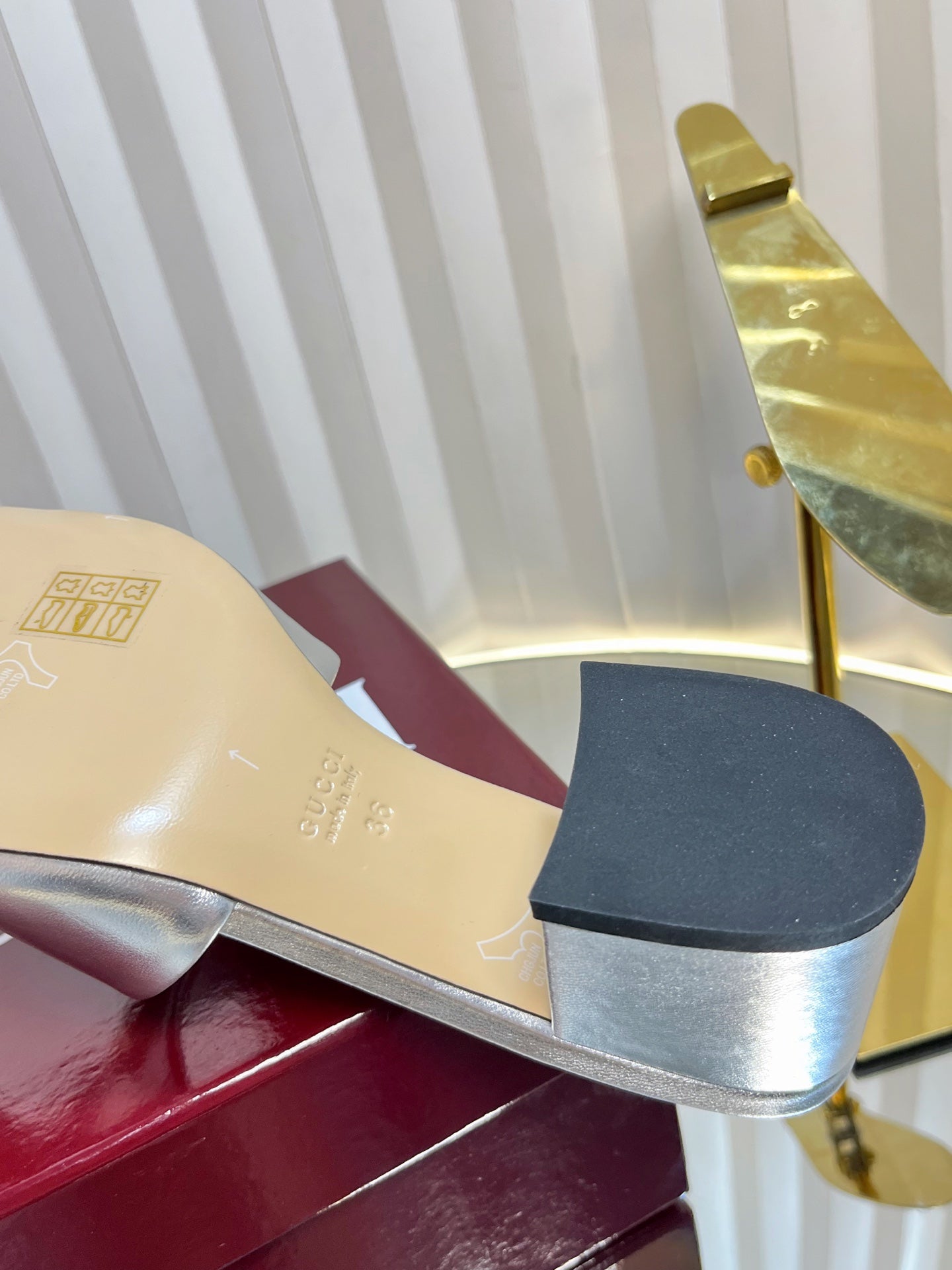 GC 25 Interlocking G Heeled Sandal Silver Patent Leather 294641