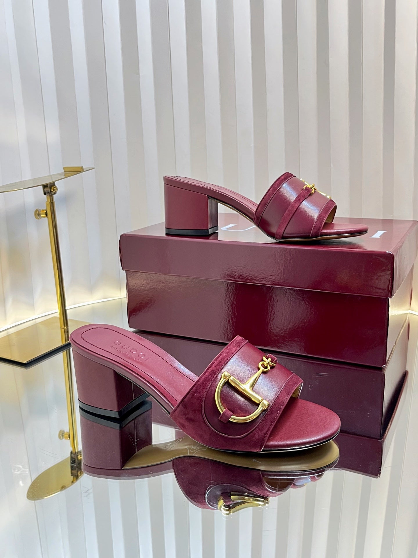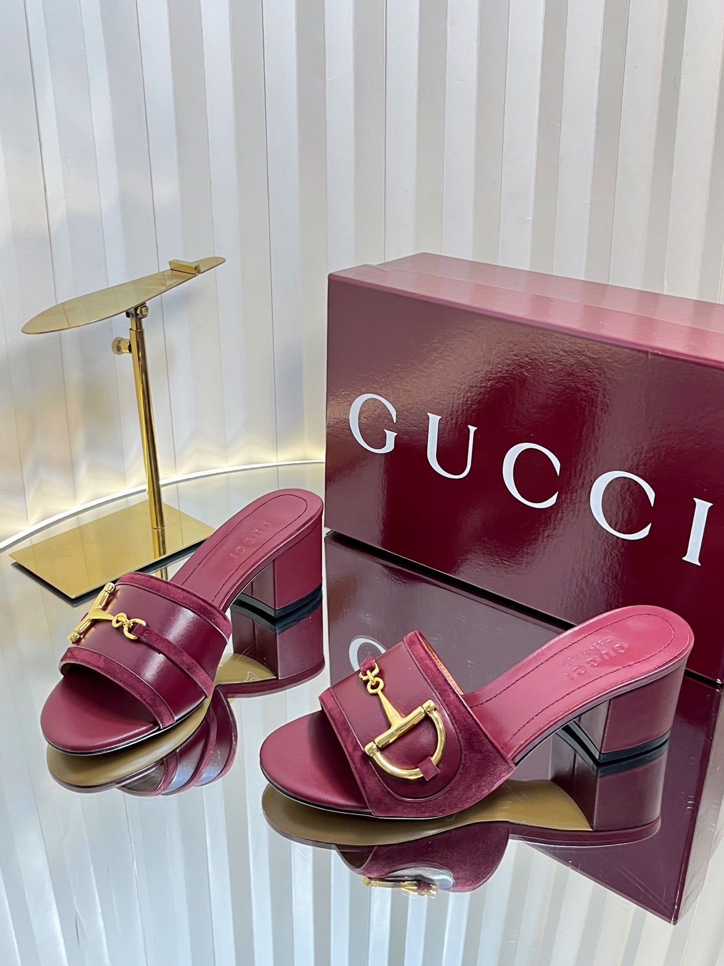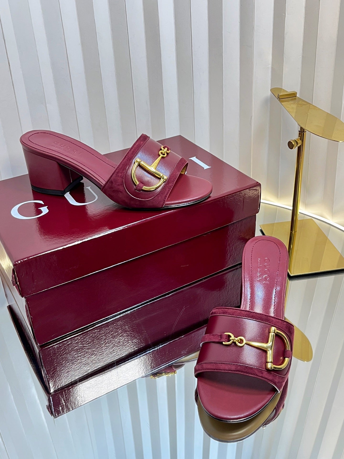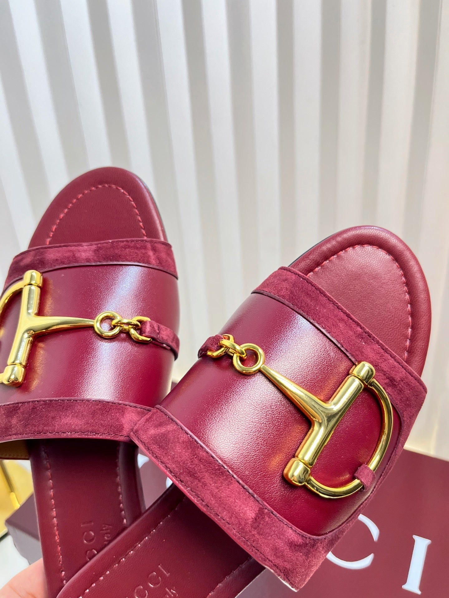 GC 25 Horsebit Sandals 50mm Red Suede Sheepskin 294653