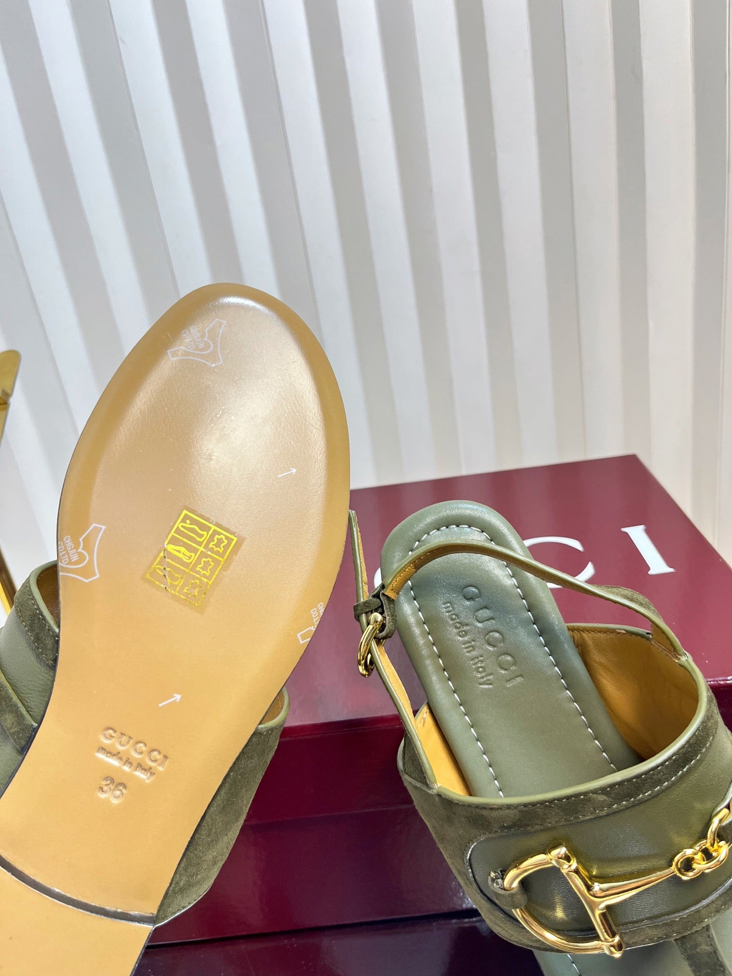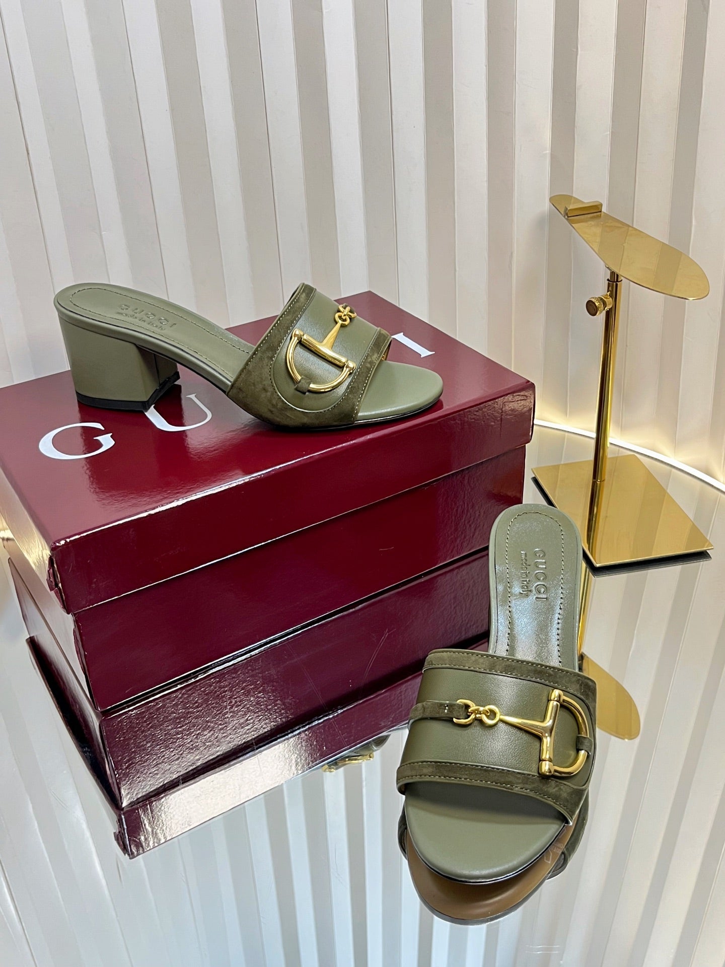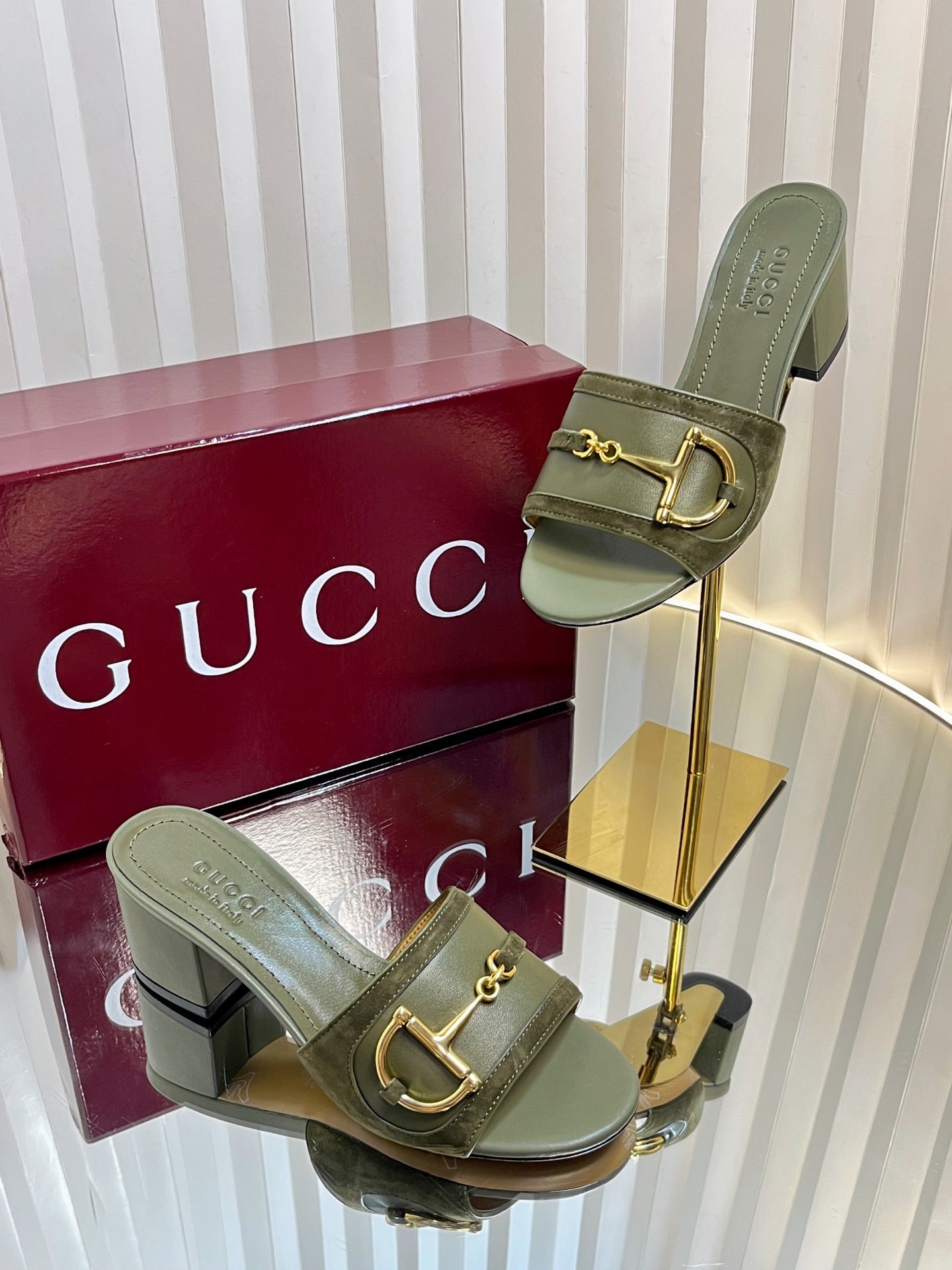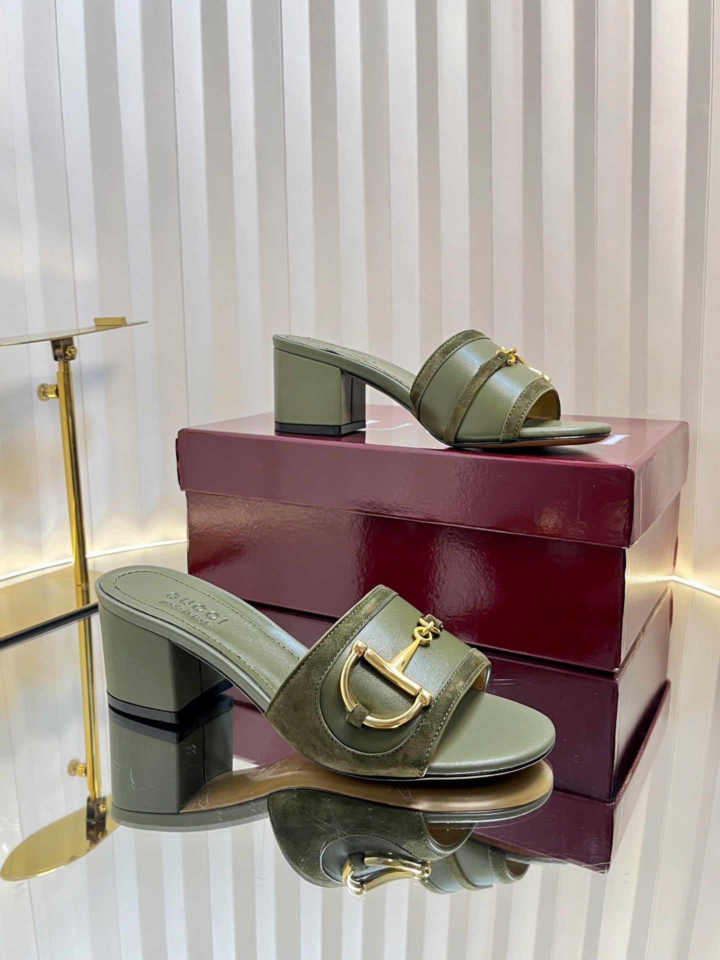 GC 25 Horsebit Sandals 50mm Dark Green Suede Sheepskin 294655