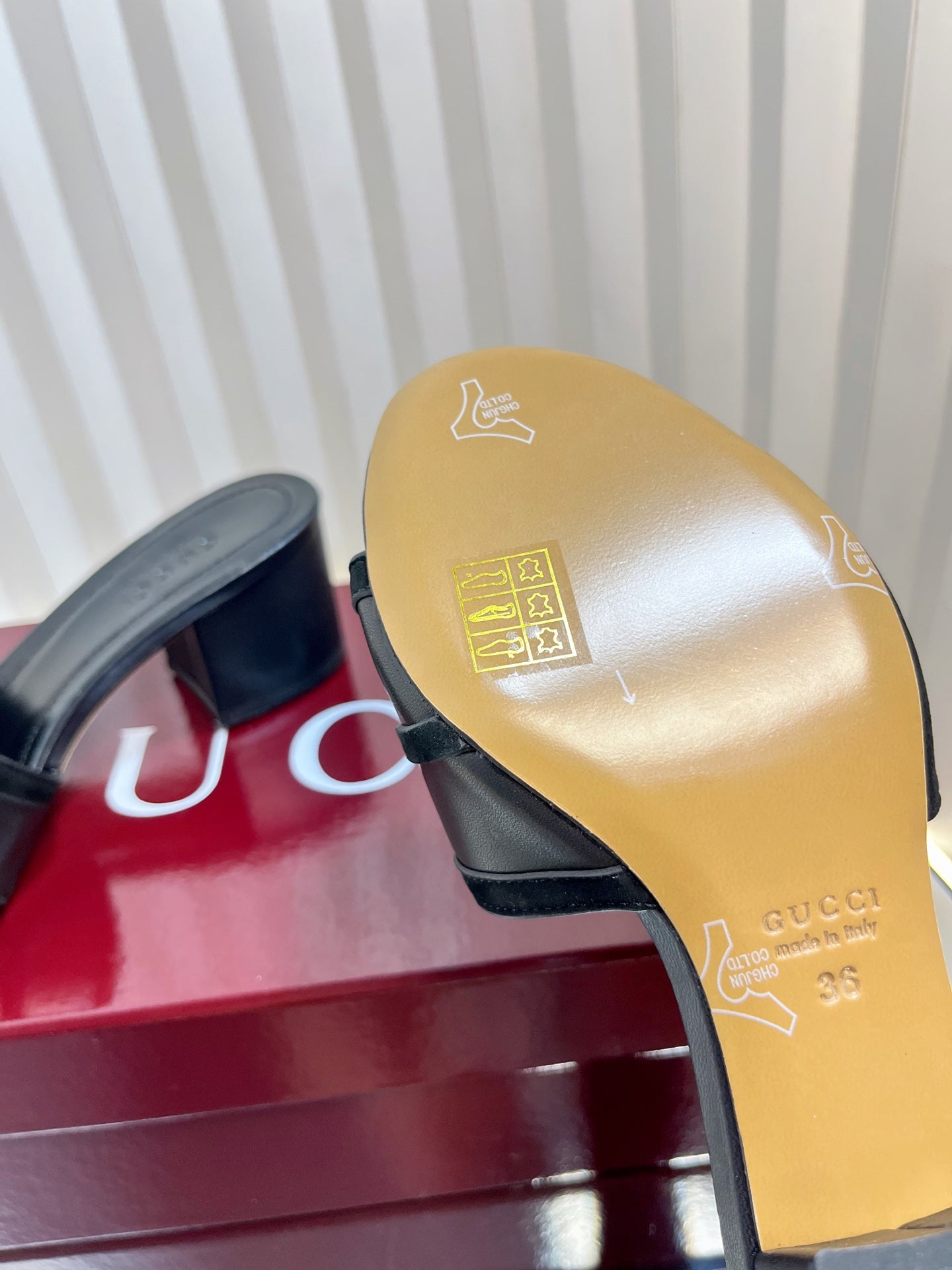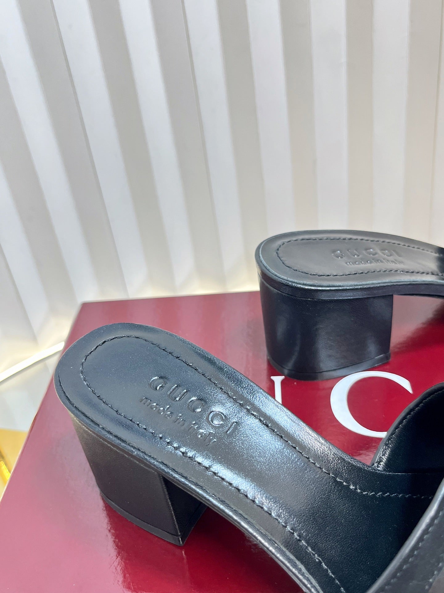 GC 2025 Double G High Heel Sandals Black Sheepskin 292469