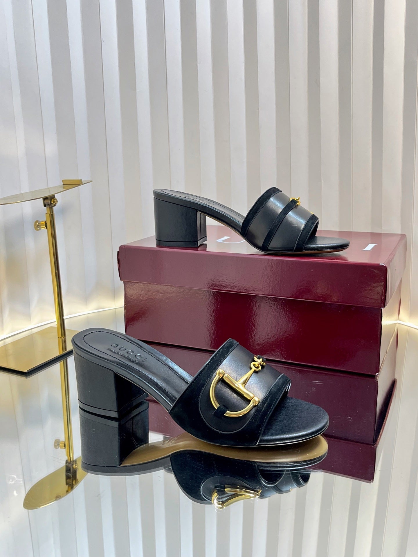 GC 25 Horsebit Sandals 50mm Black Suede Sheepskin 294656