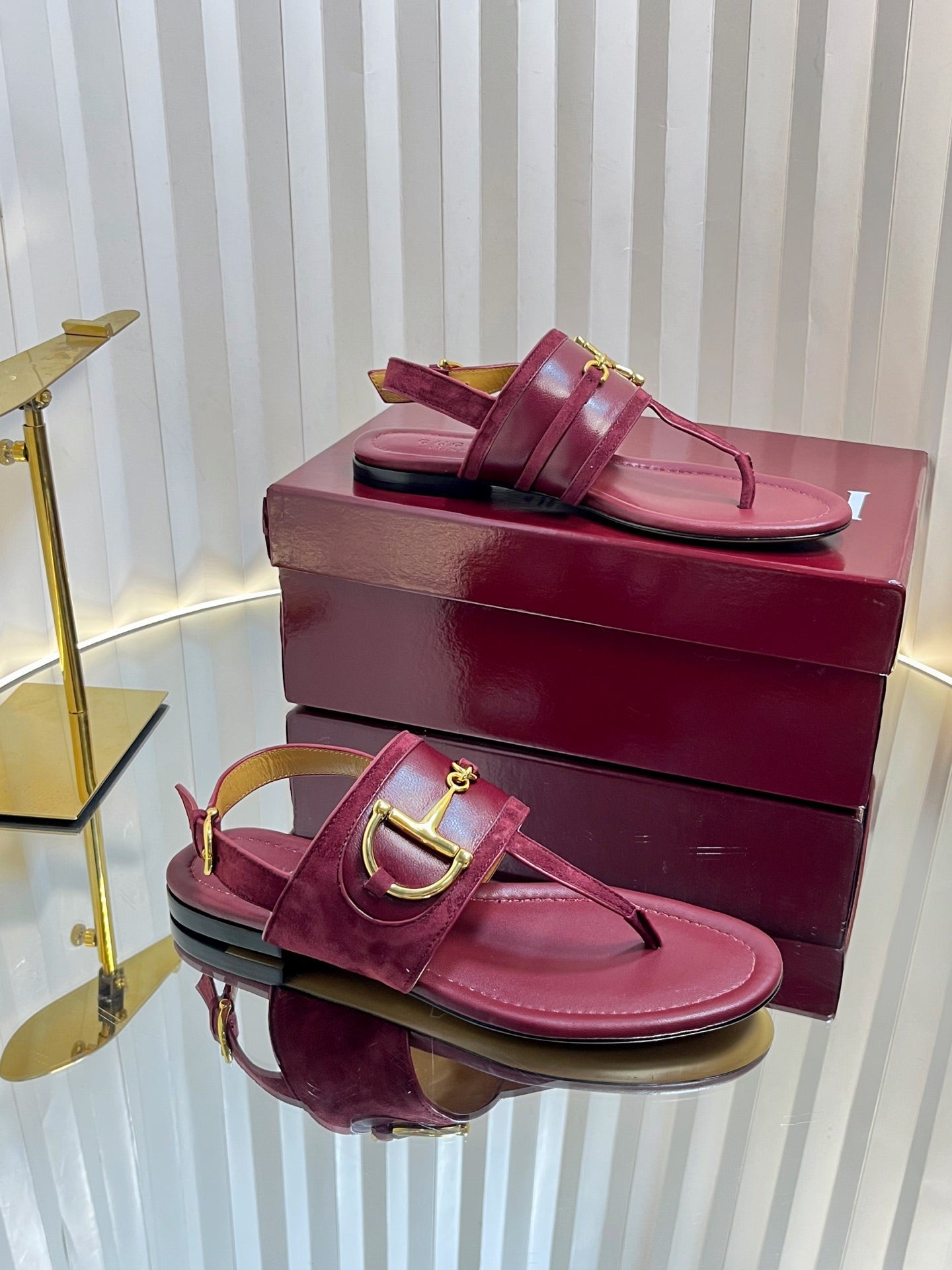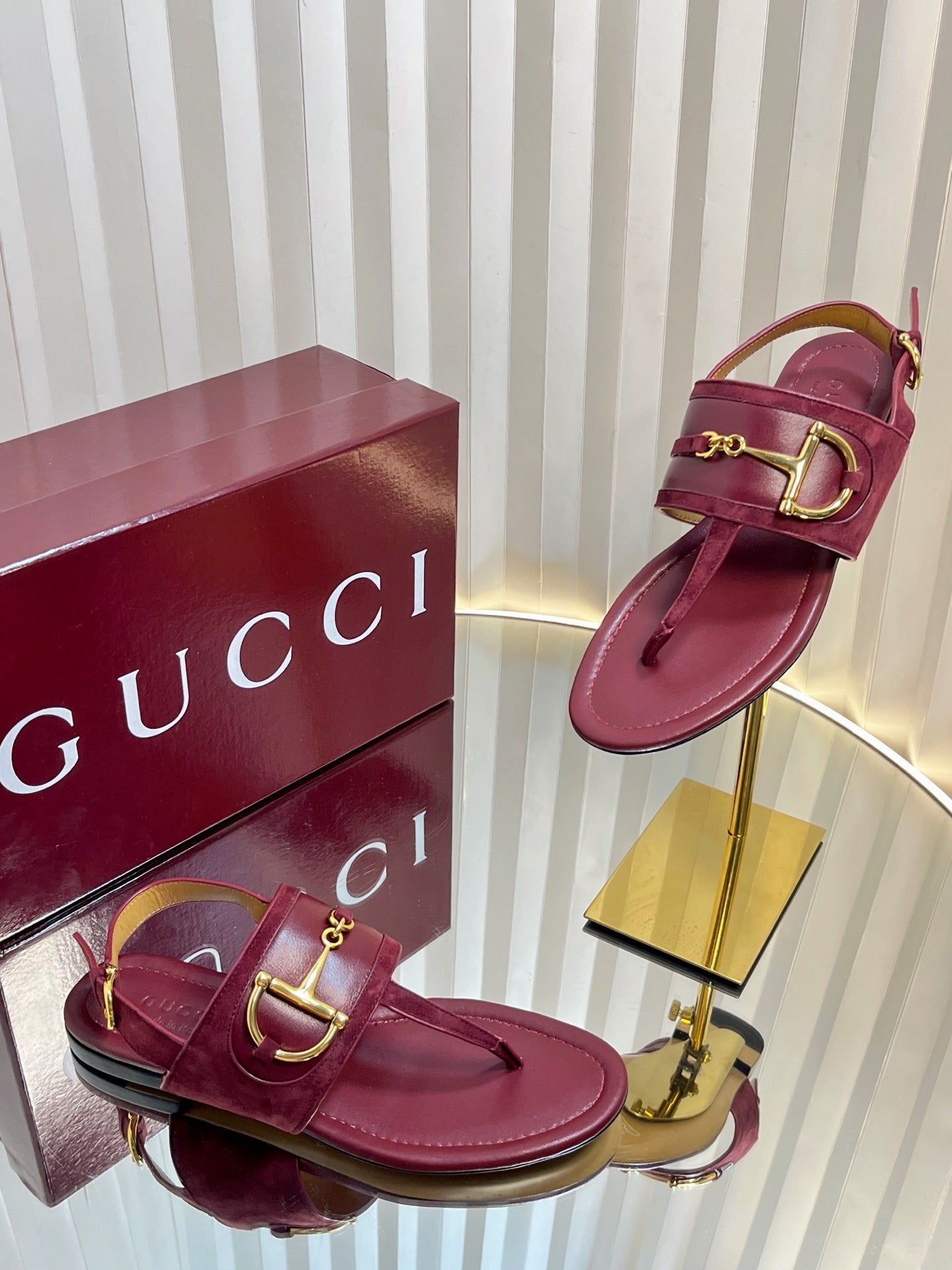 GC 25 Horsebit Thong Sandals Red Canvas Leather 293853