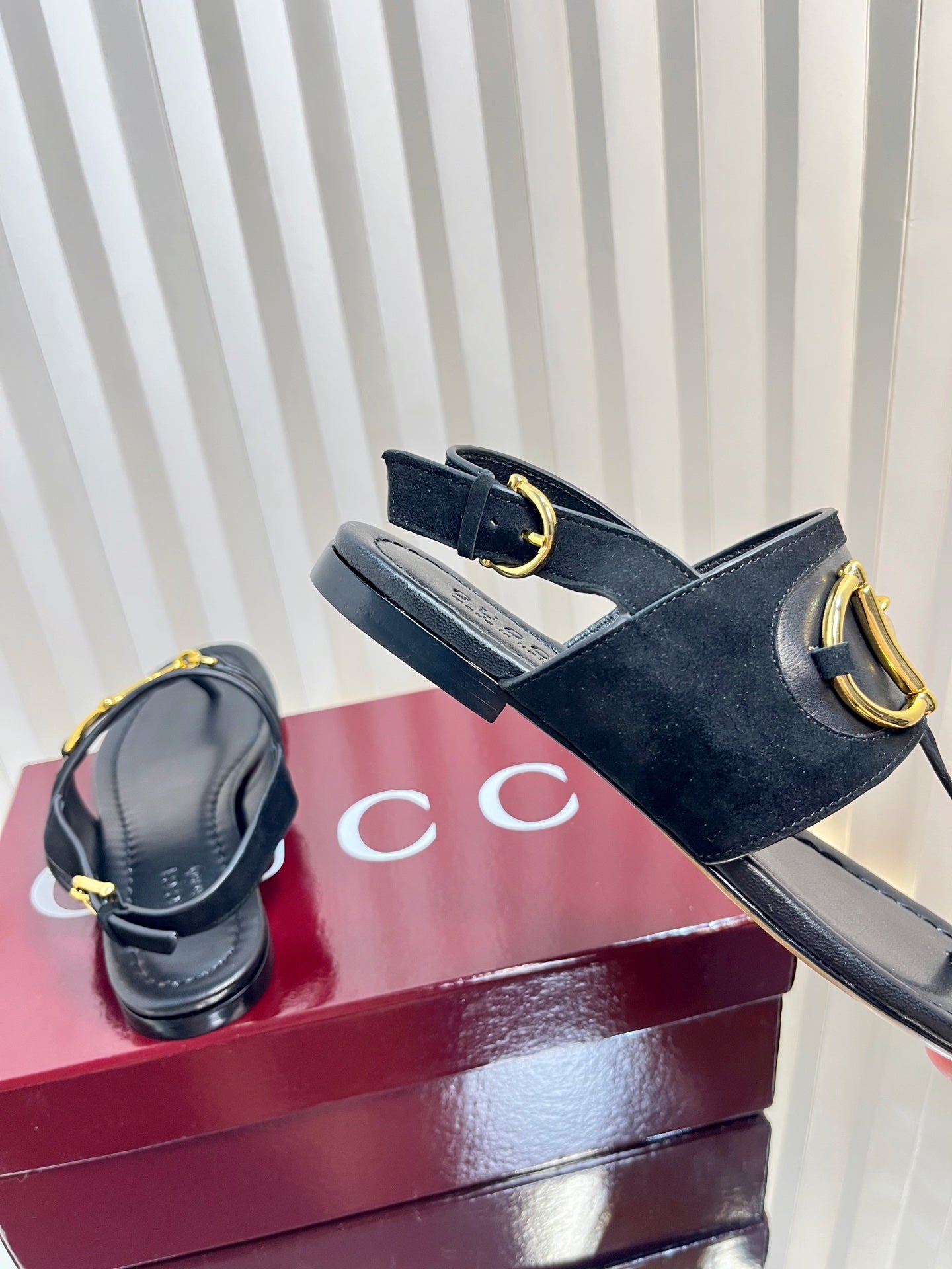 GC 25 Horsebit Sandals 10mm Black Suede Sheepskin 294652