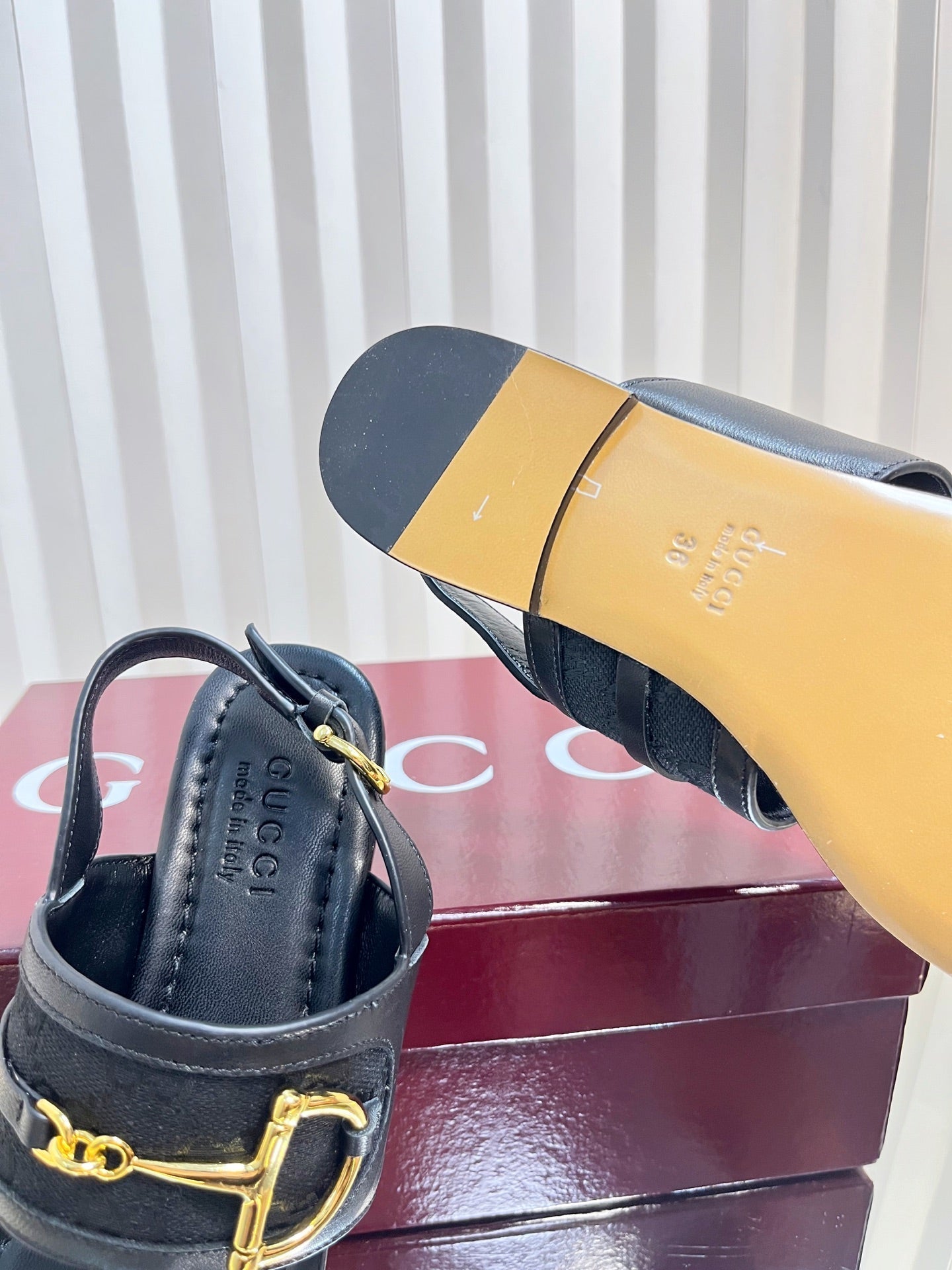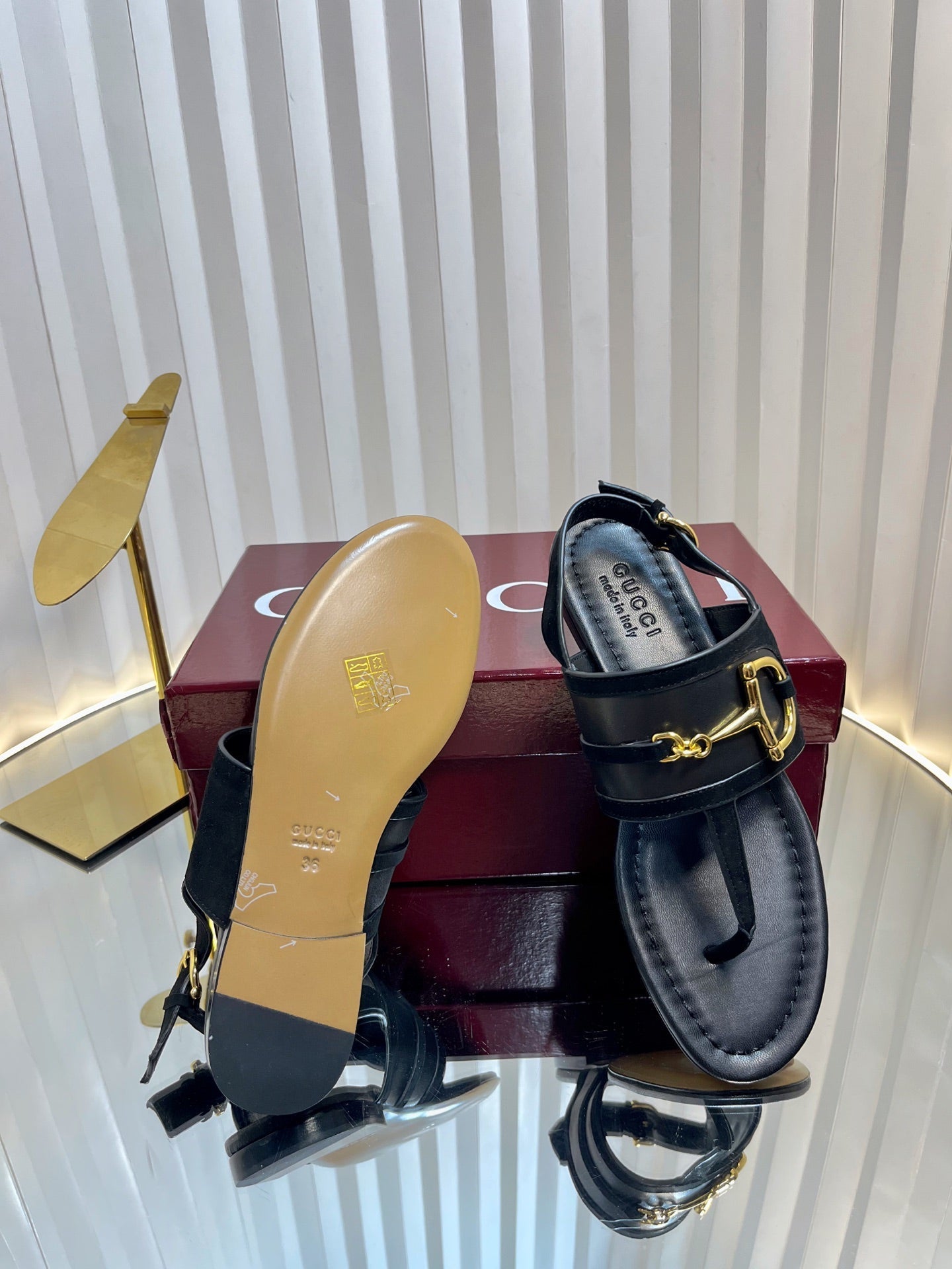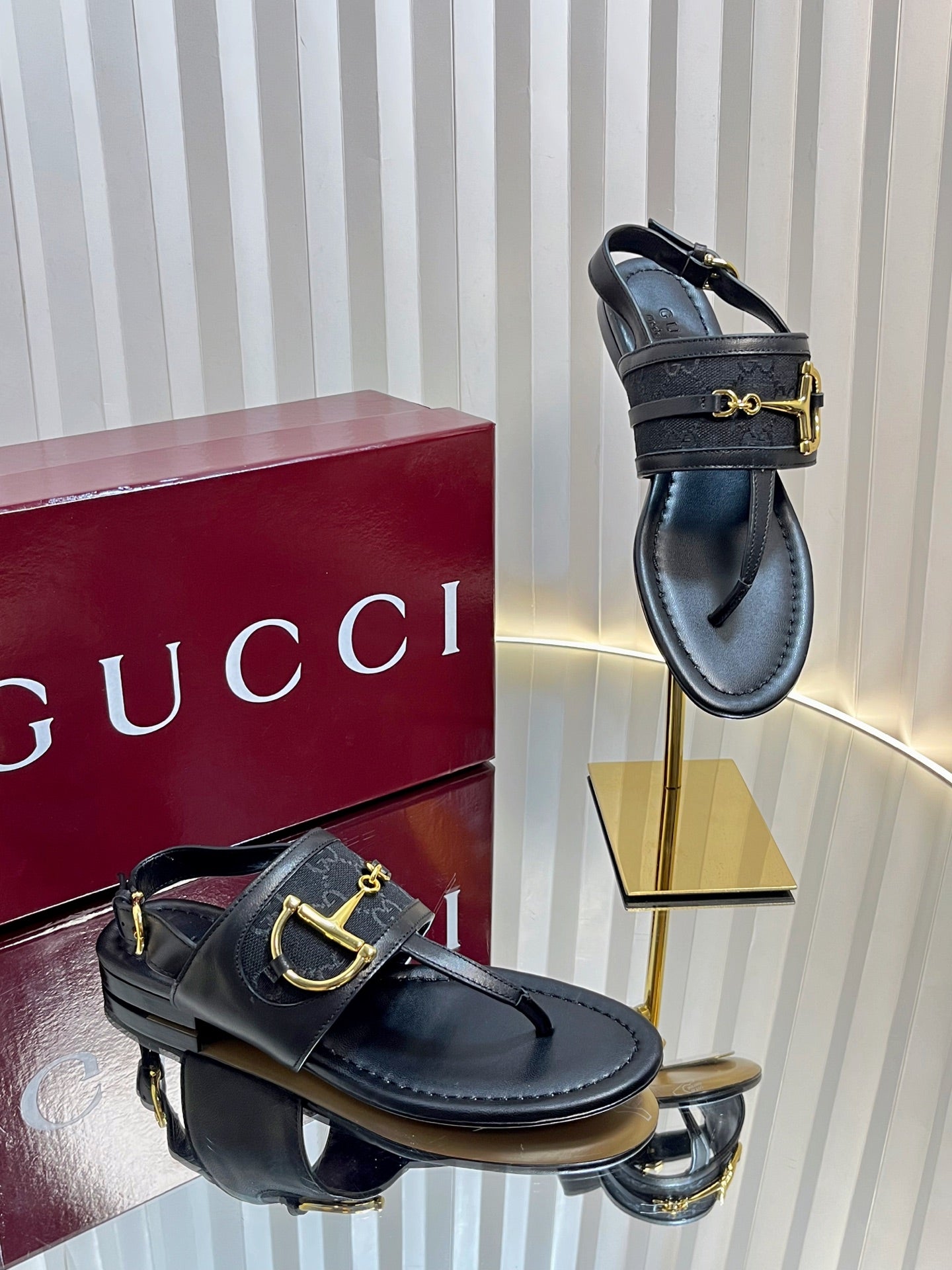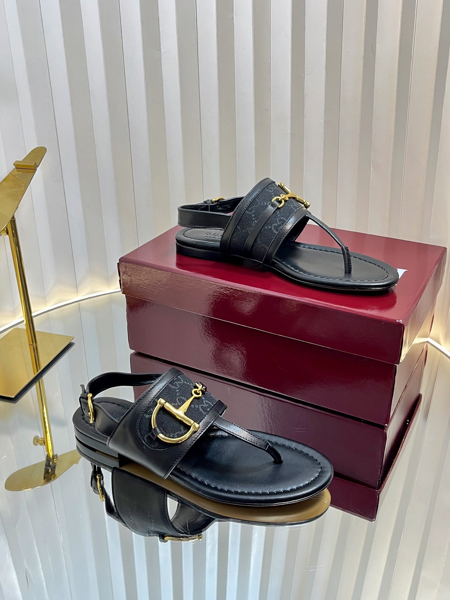 GC Horsebit Thong Sandals Black Leather 292477