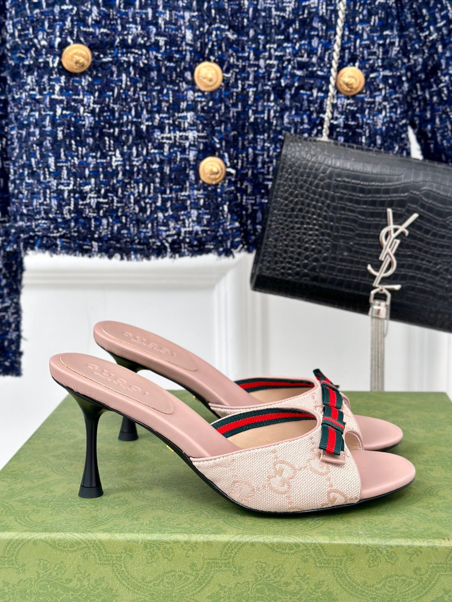 GG Vintage High Heel Slippers Pink