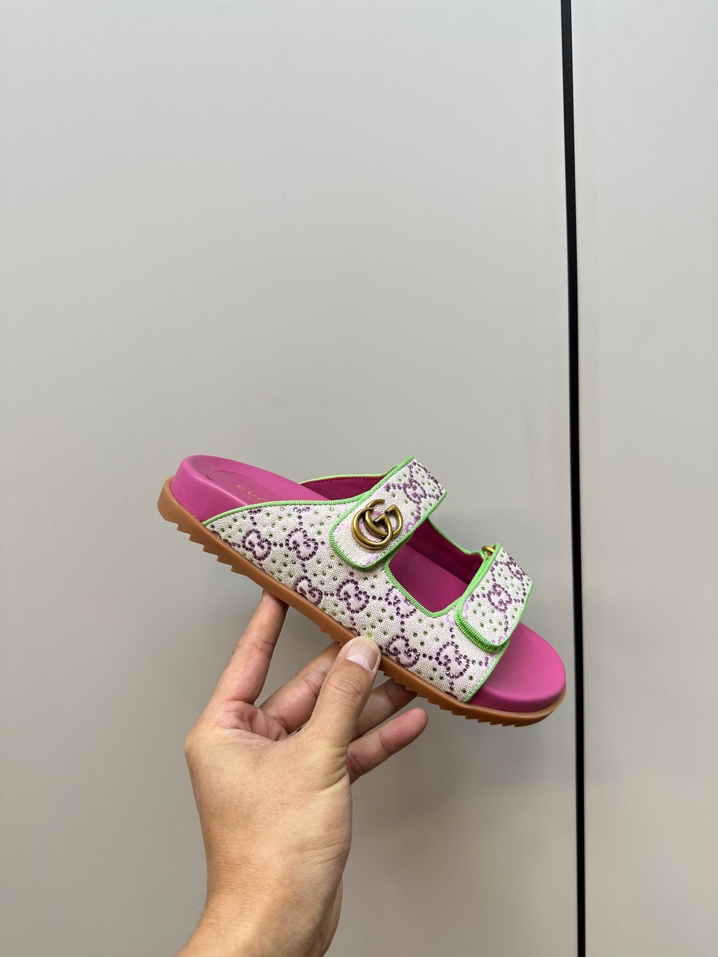 GG Interlocking double G hollow slippers Neon pink