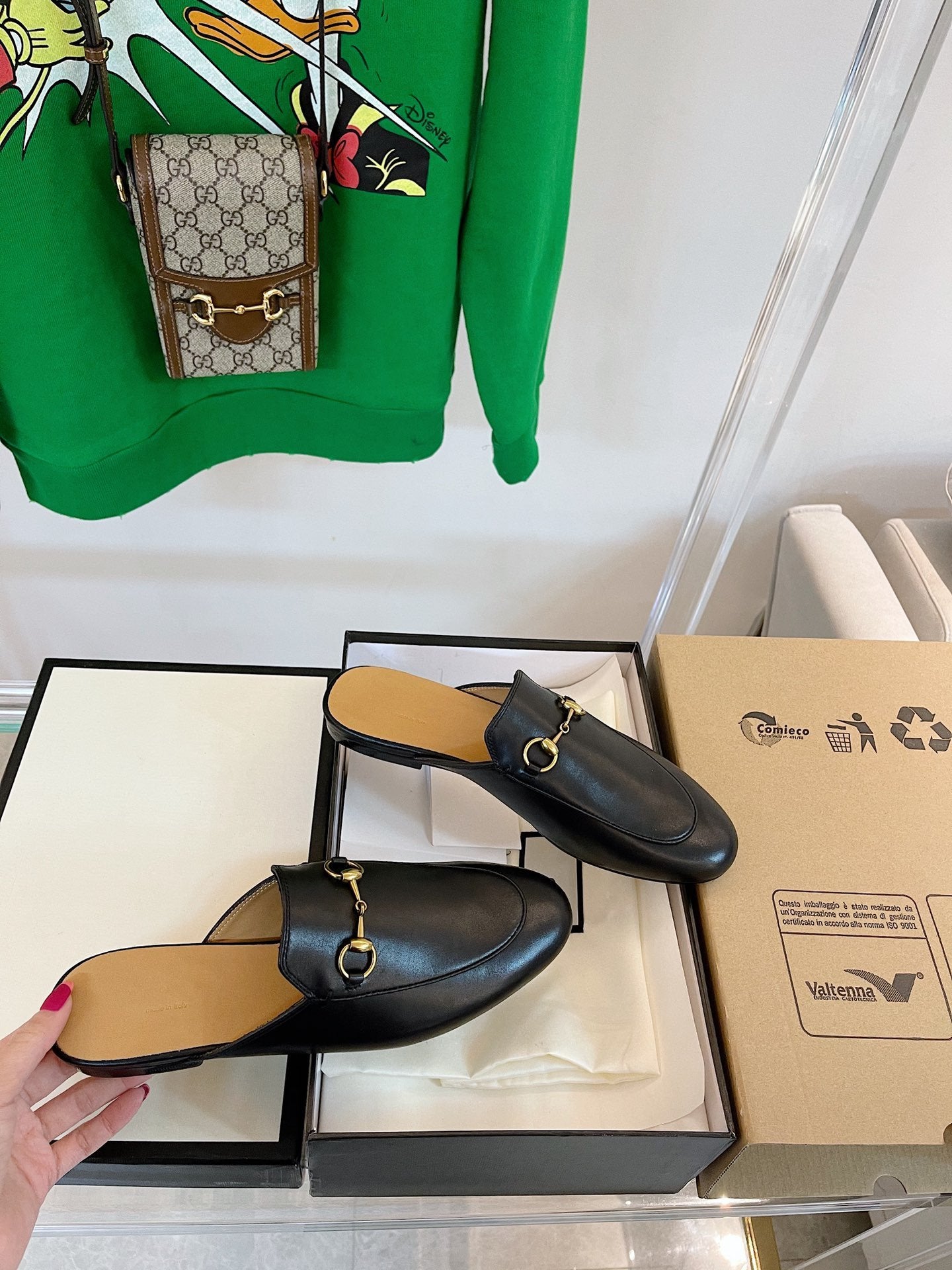 GG Horsebit Slingback 85MM Black Leather Point Toe