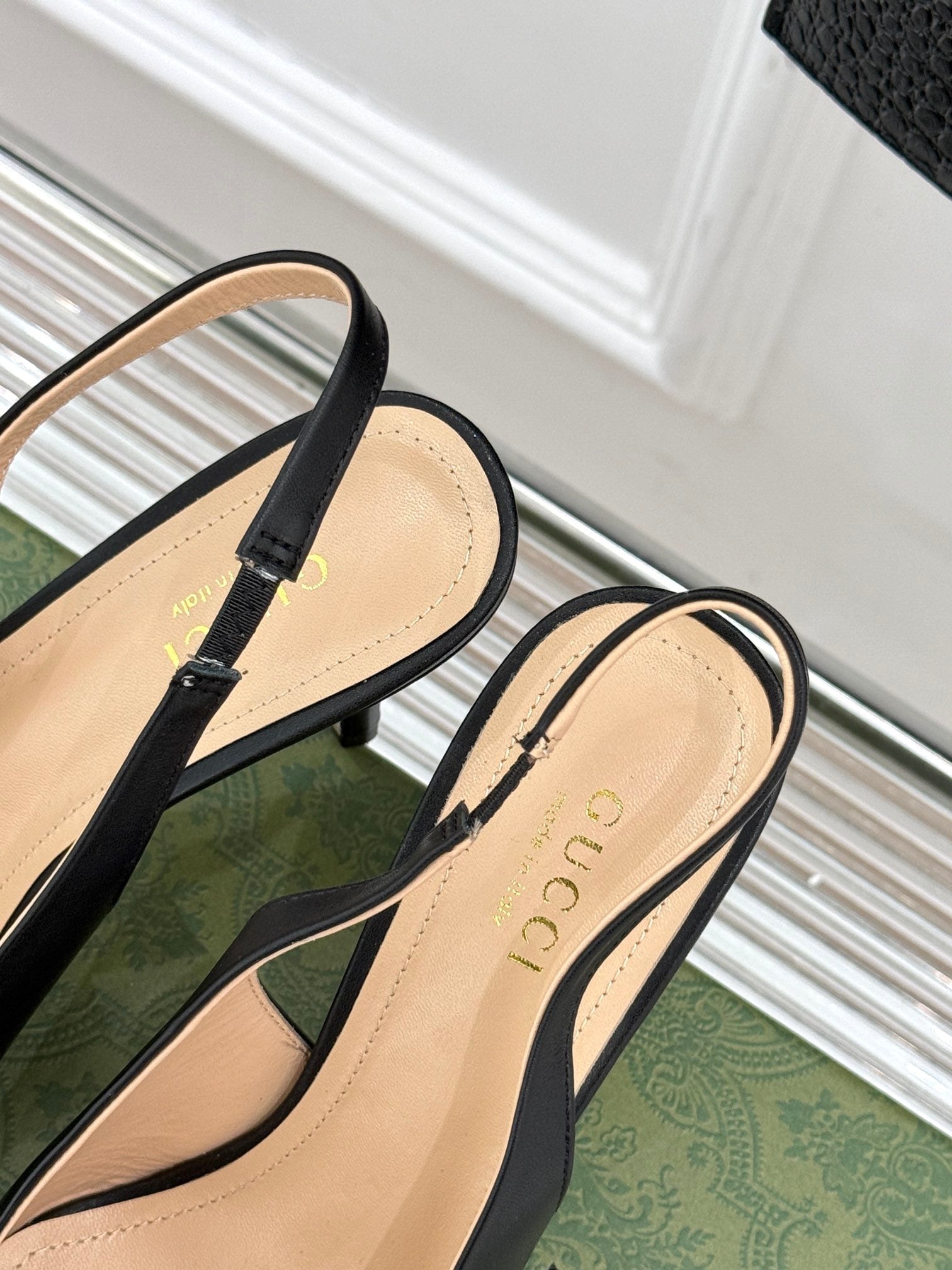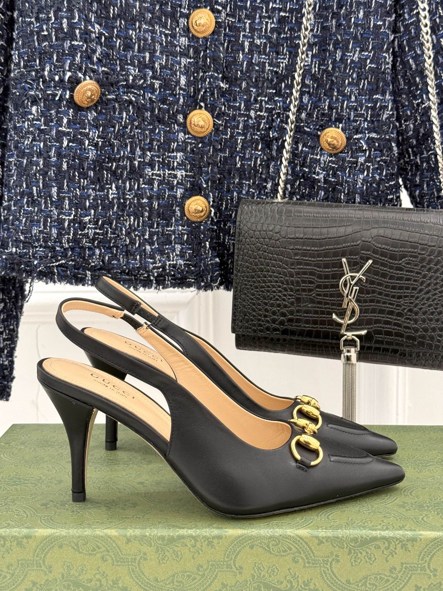 GG Horsebit Slingback 85MM Black GG Leather Point Toe