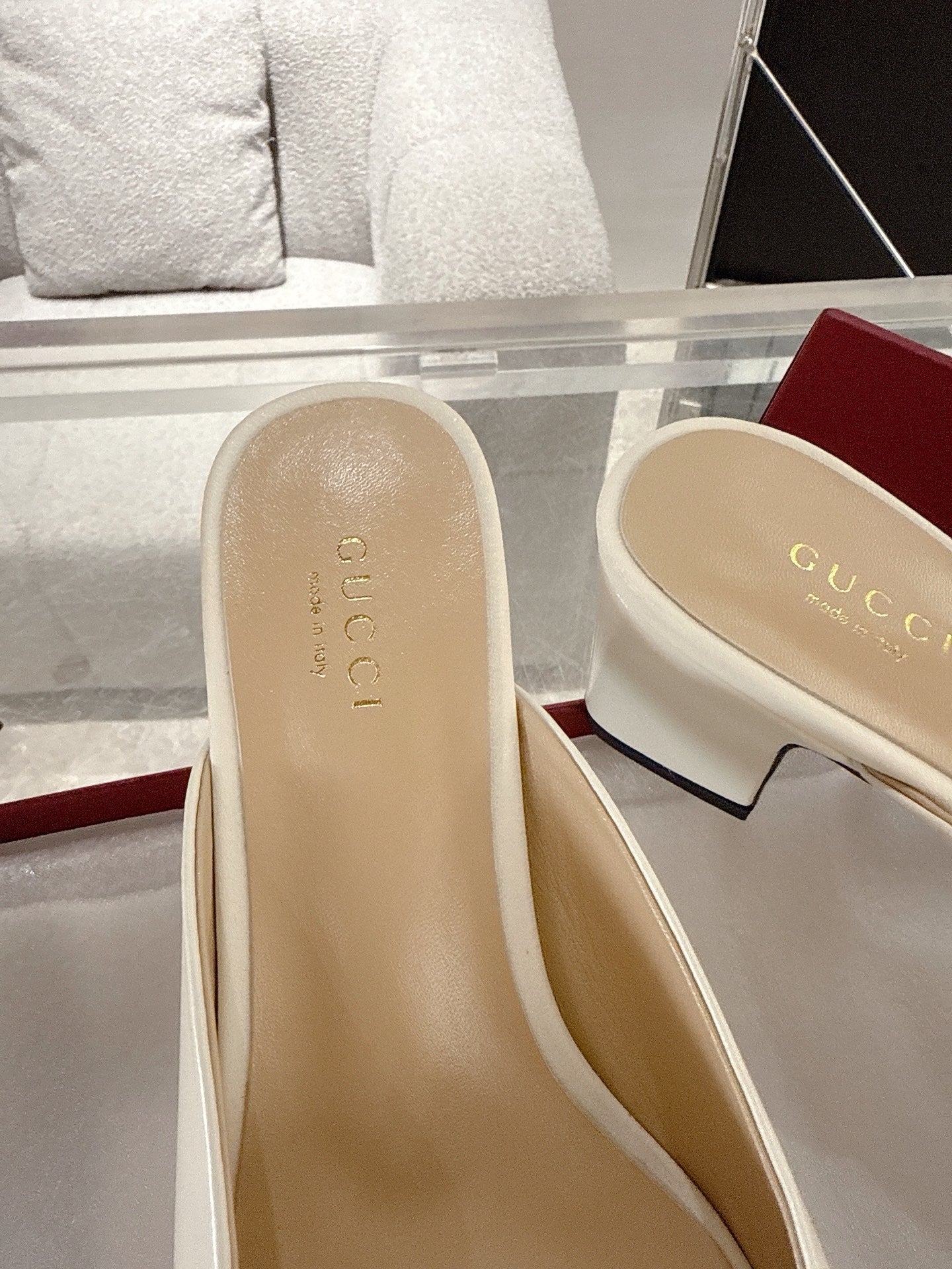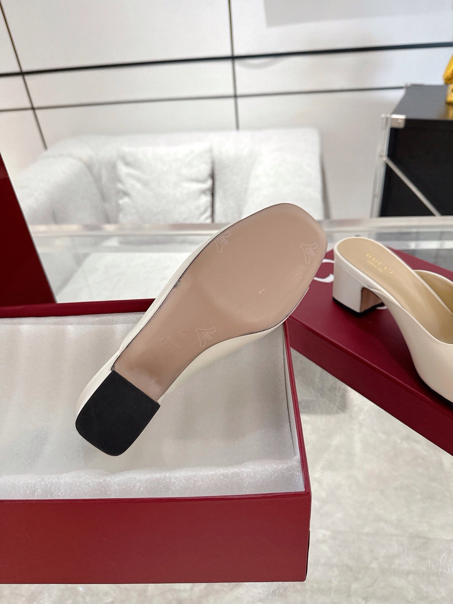 GG Horsebit Slingback 85MM Cream Leather Point Toe
