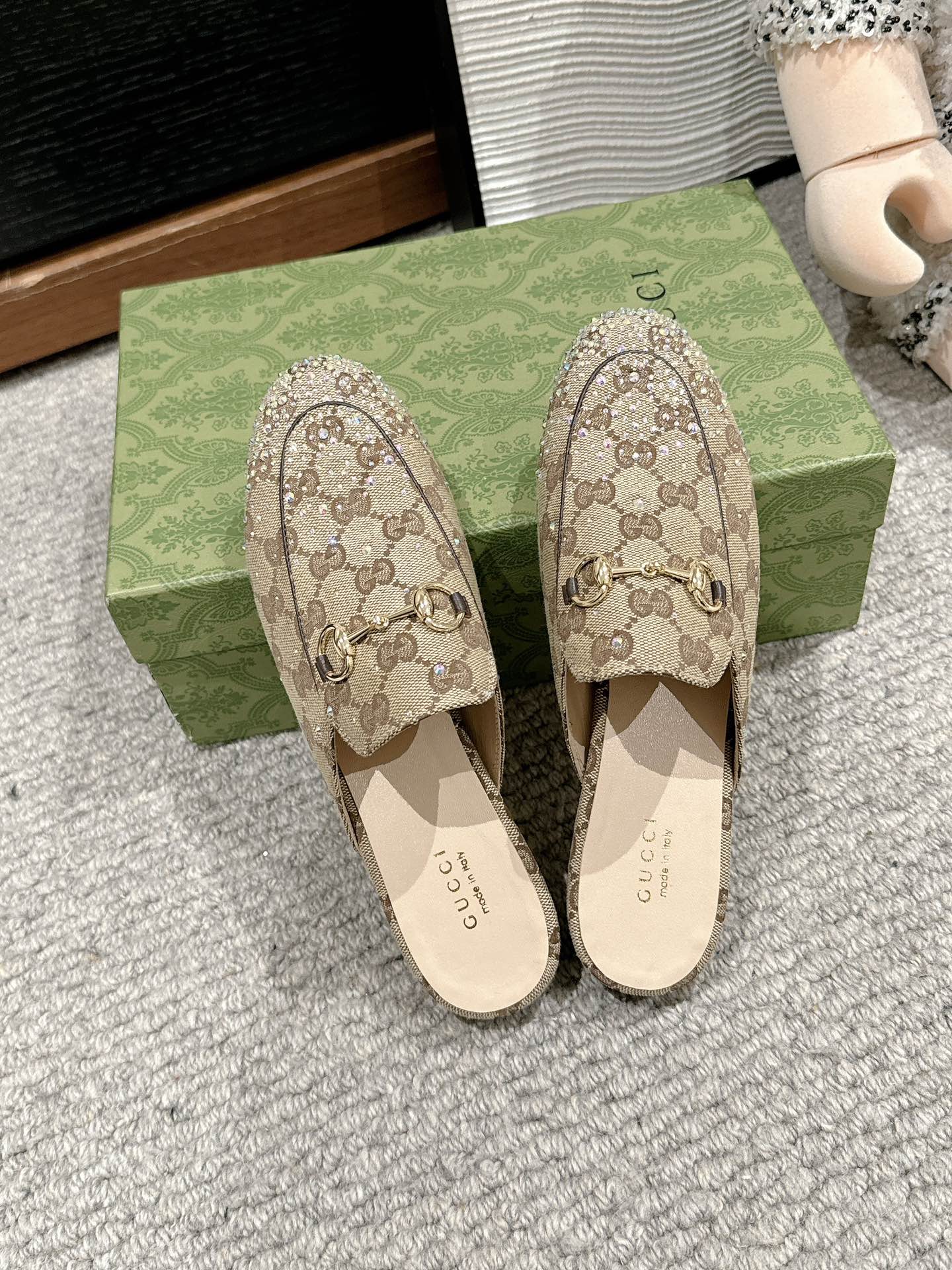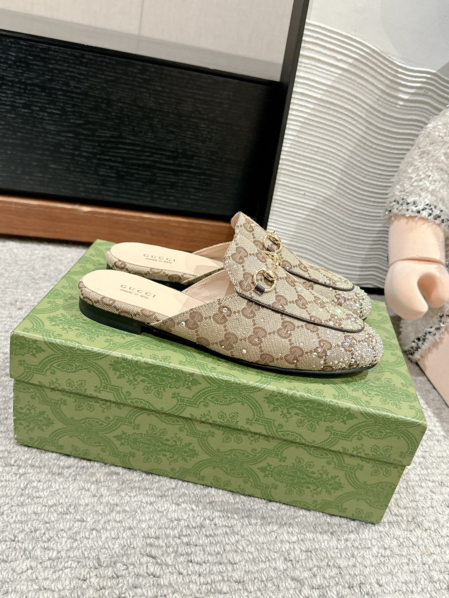 GG PRINCETOWN MULES LIGHT BROWN FABRIC