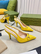 GC Horsebit Slingback Pump 100mm Yellow Canvas Sheepskin 294549