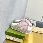GG SLIDE SANDAL PASTEL PINK CANVAS CROSS STRAPS