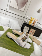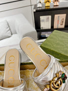 GG SPARKLE CRYSTAL SLIDE SANDAL SILVER CALFSKIN