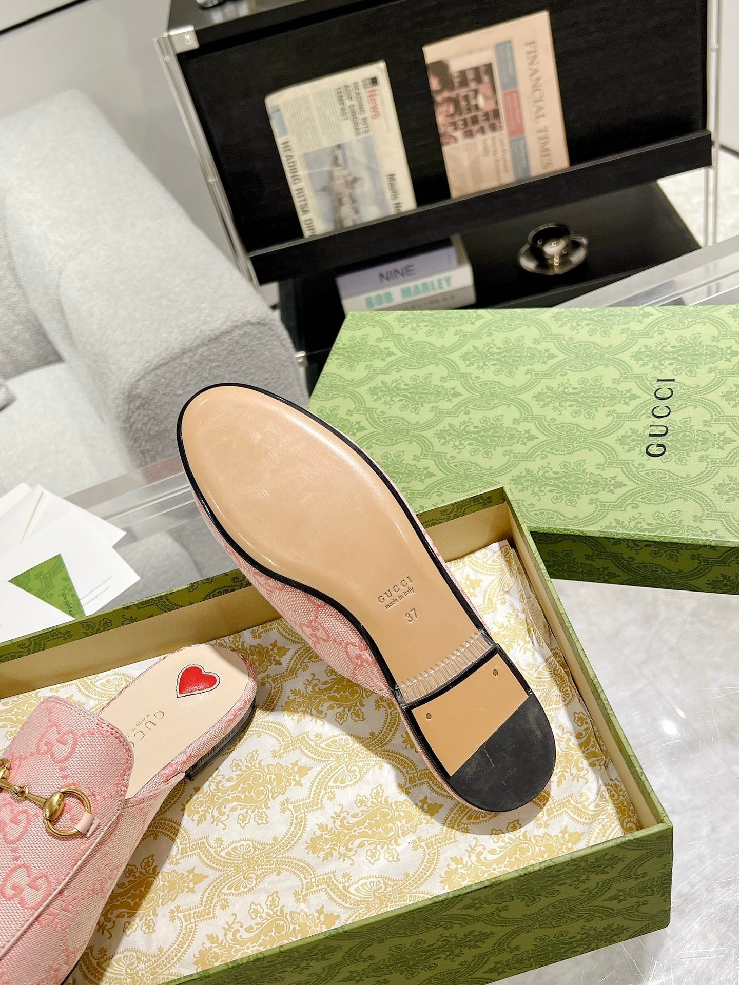 MEN'S MULE WITH HORSEBIT IN PINK PASTEL MONOGRAM JACQUARD FABRIC