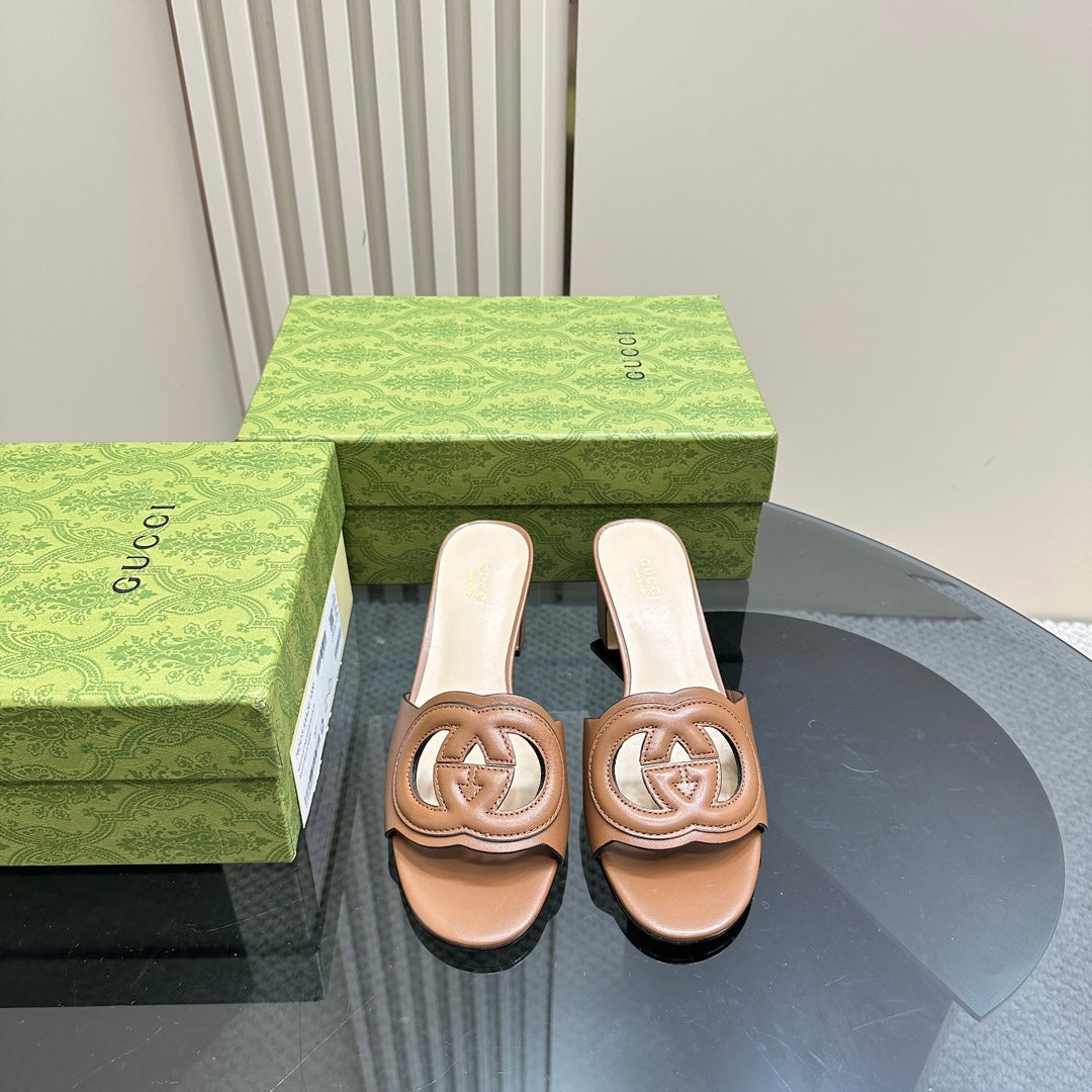 MID-HEEL 5 CM MULE IN BRONZE BROWN CALFSKIN