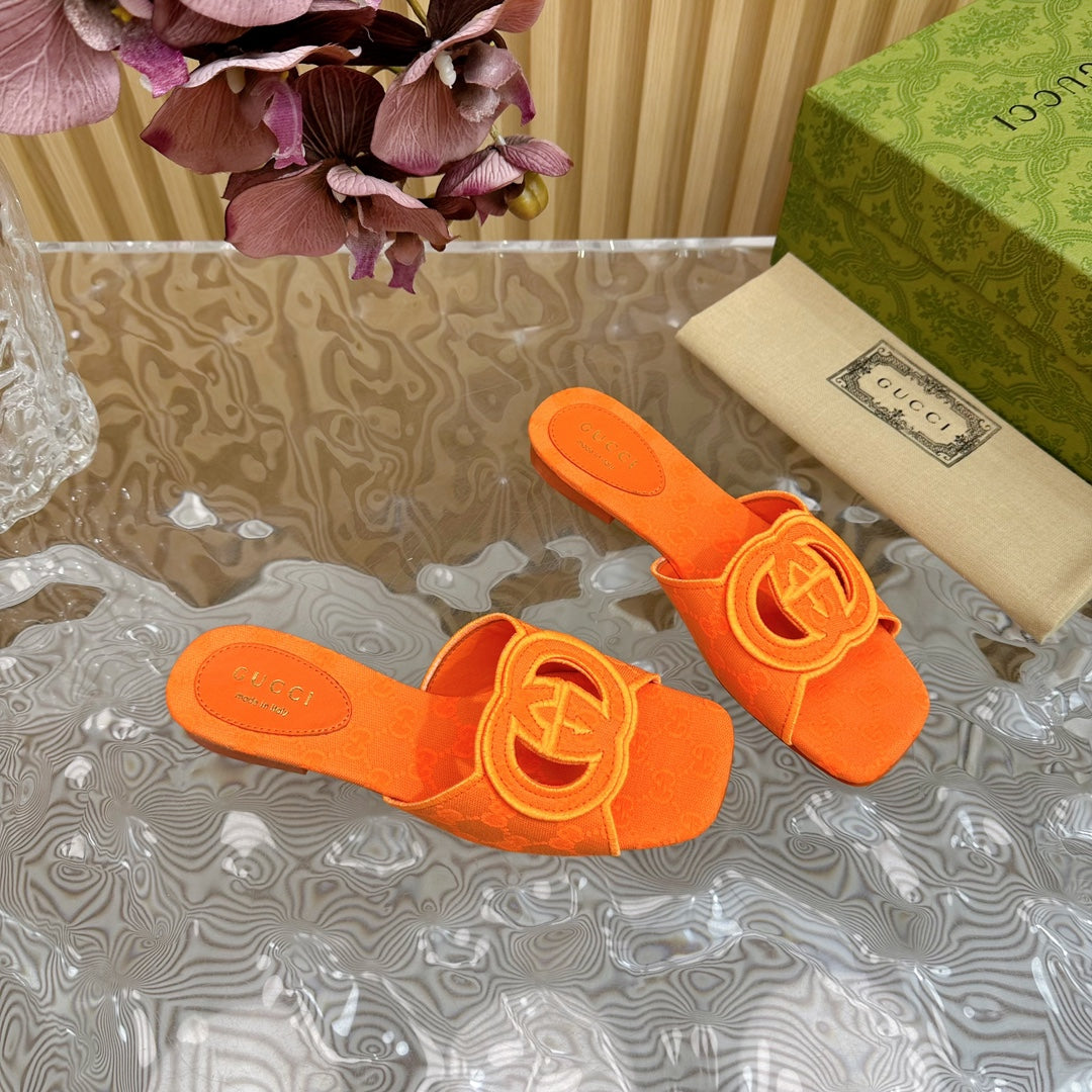 WOMEN'S INTERLOCKING G SLIDE SANDAL TIGER CANVAS