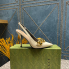 WOMEN'S SLINGBACK 10.5 CM IN WHITE CALFSKIN WITH GOLD HARDWARE