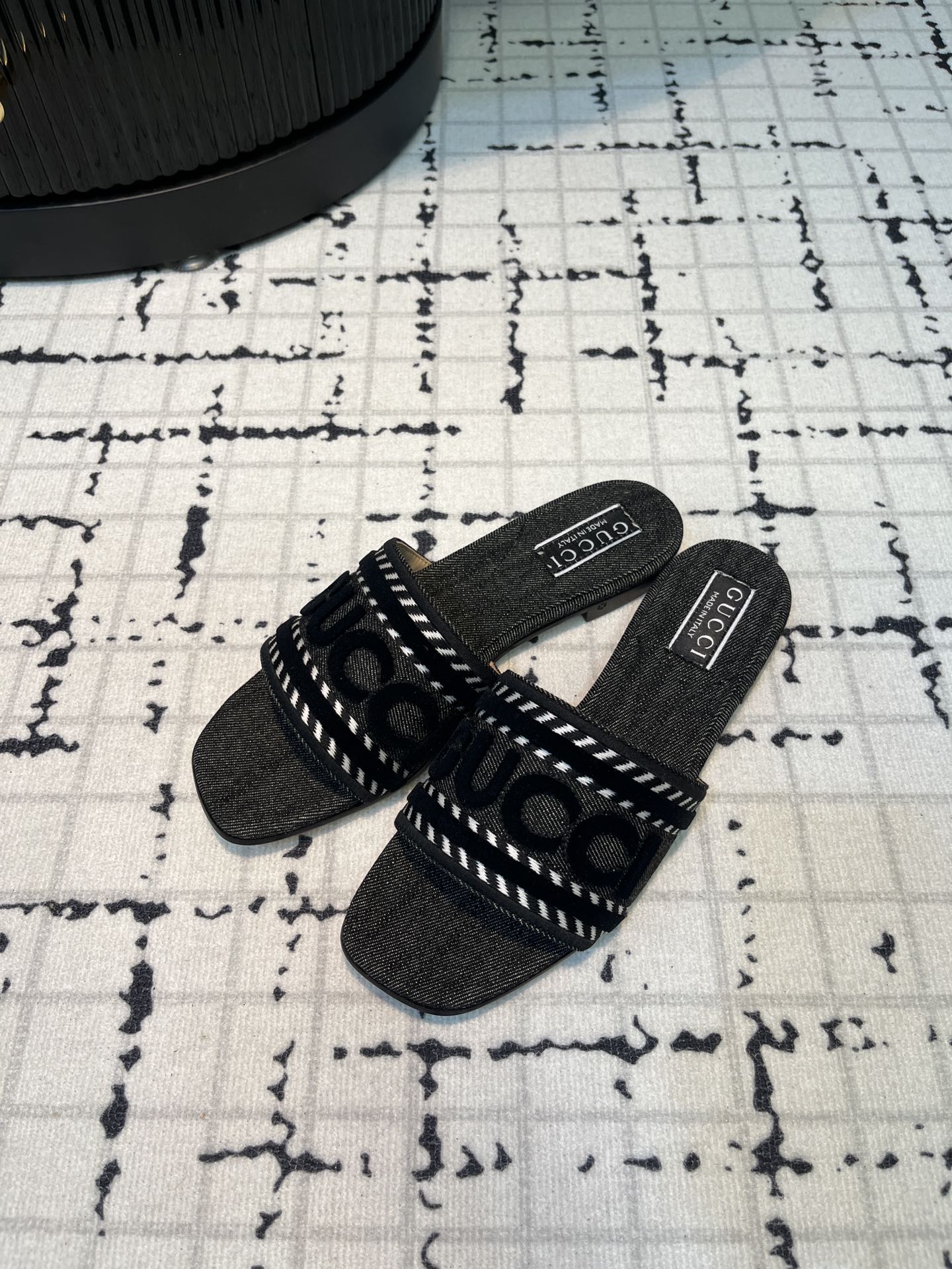 GG EXCLUSIVE SLIDE SANDAL BLACK AND CHARCOAL FABRIC