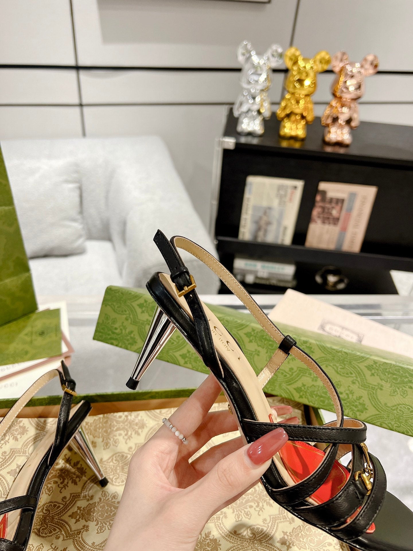 HIGH THONG MULE 55MM IN BLACK CALFSKIN WITH GOLD HARDWARE