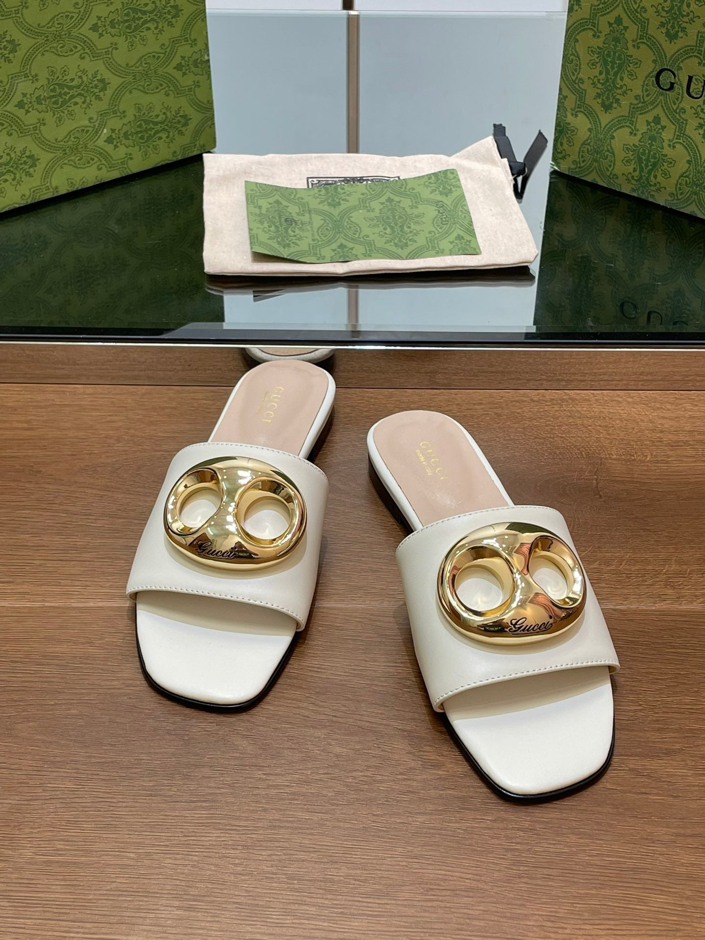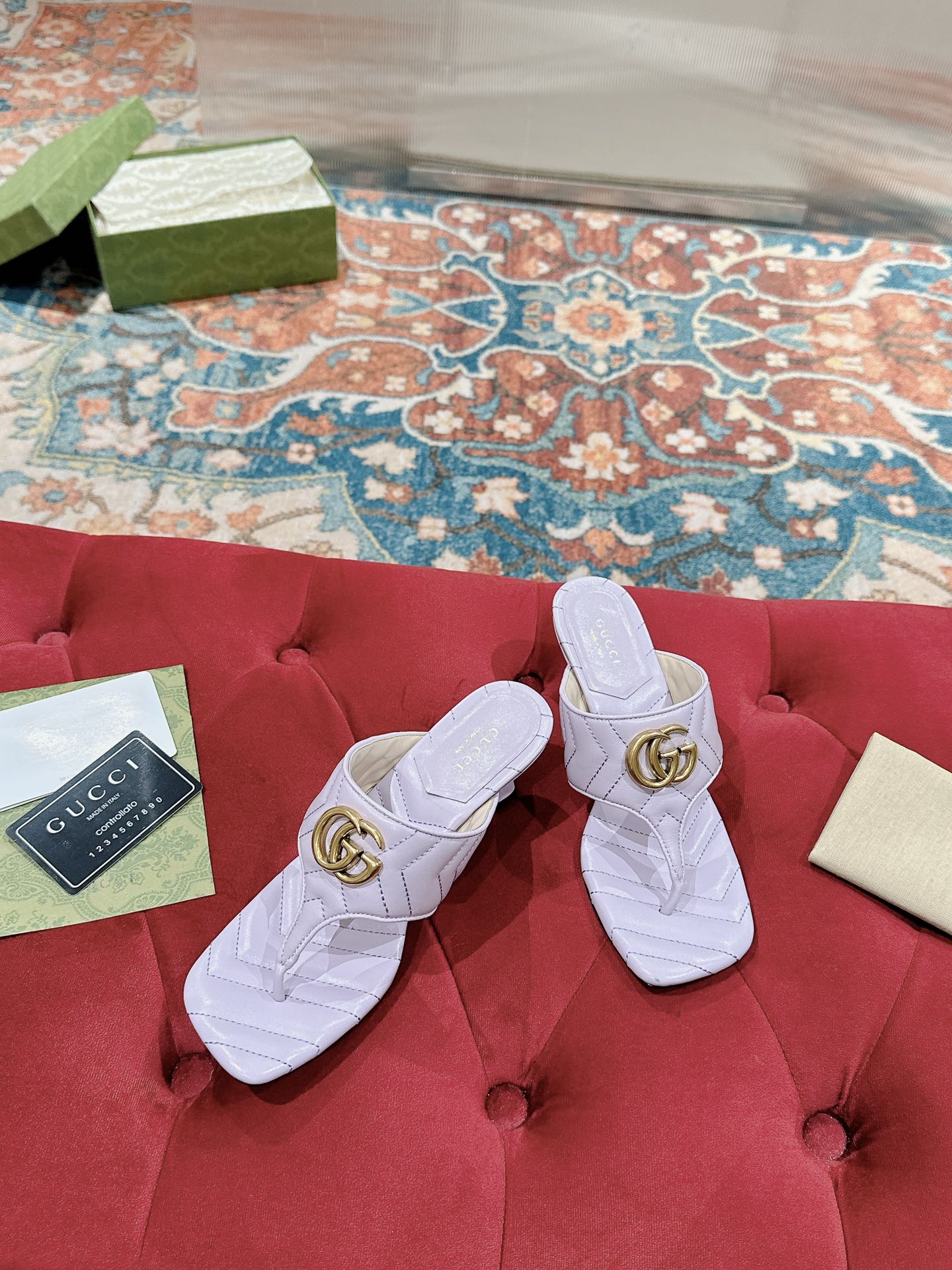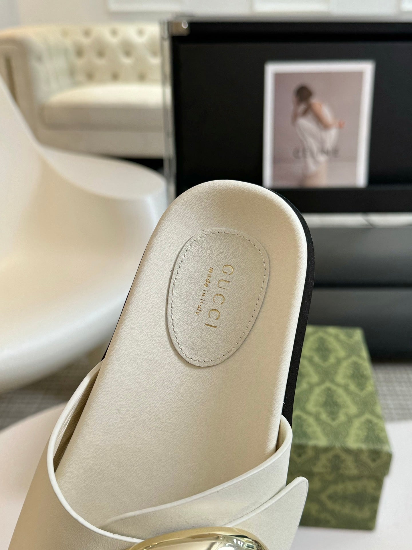 HIGH THONG MULE 55MM IN WHITE CALFSKIN WITH GOLD HARDWARE