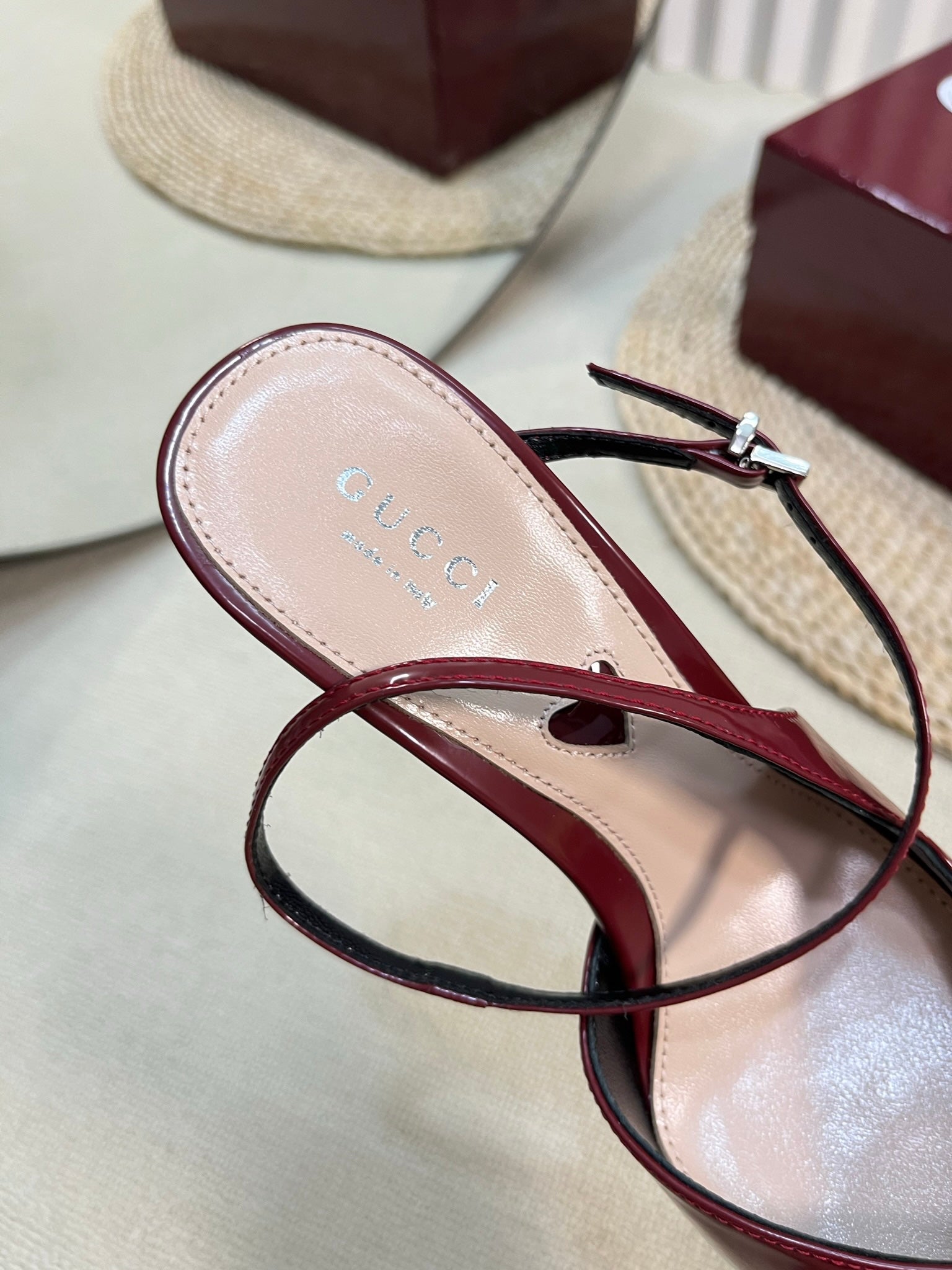 HIGH SANDAL 10 CM IN BERRY RED GLOSSY CALFSKIN