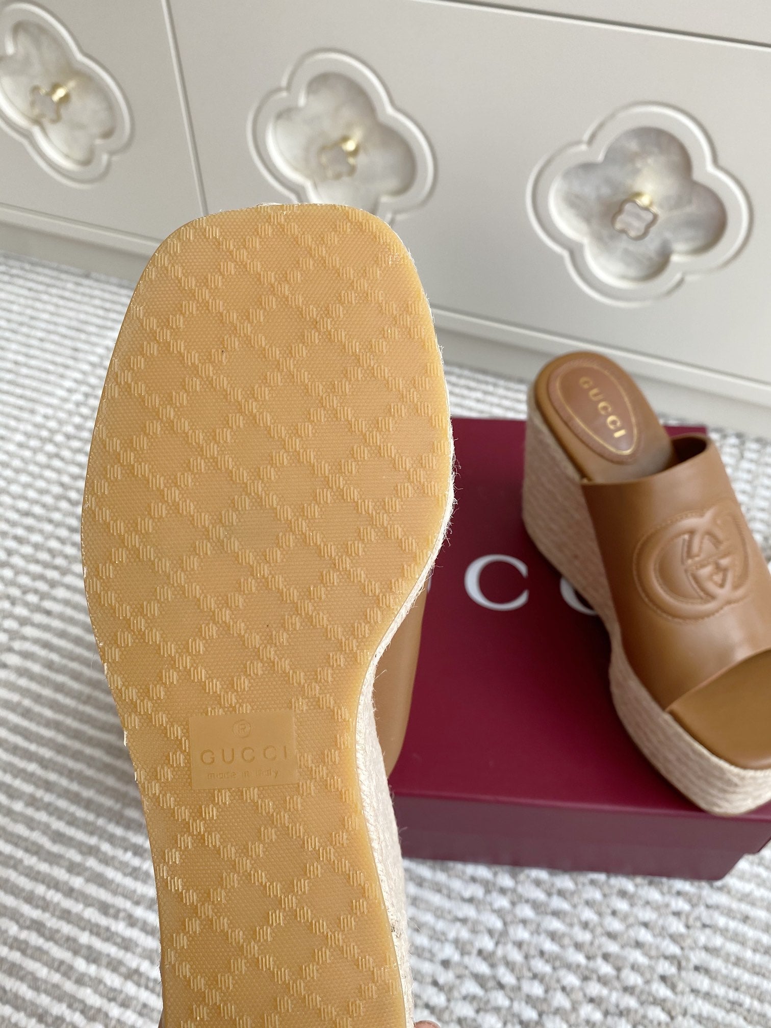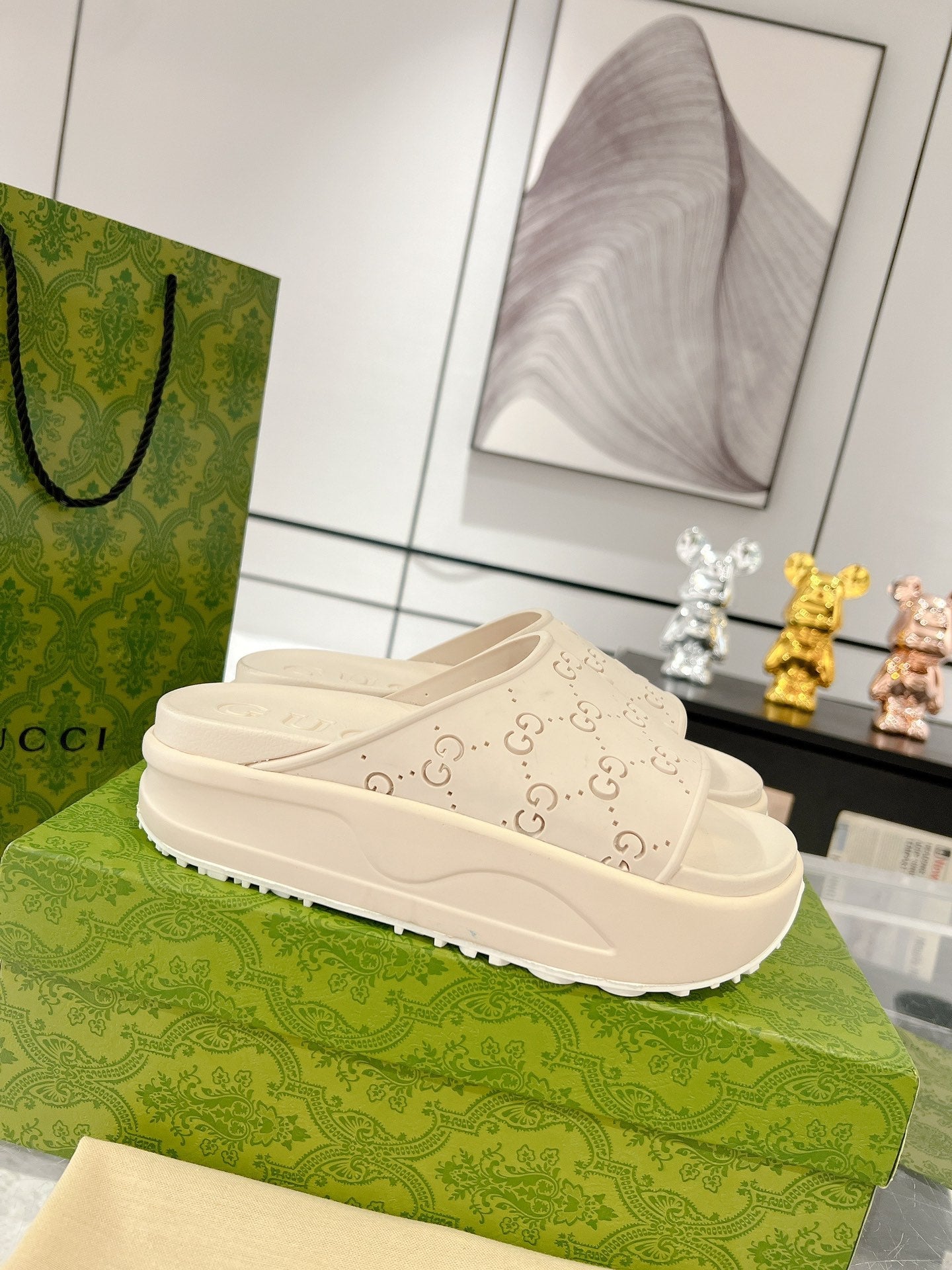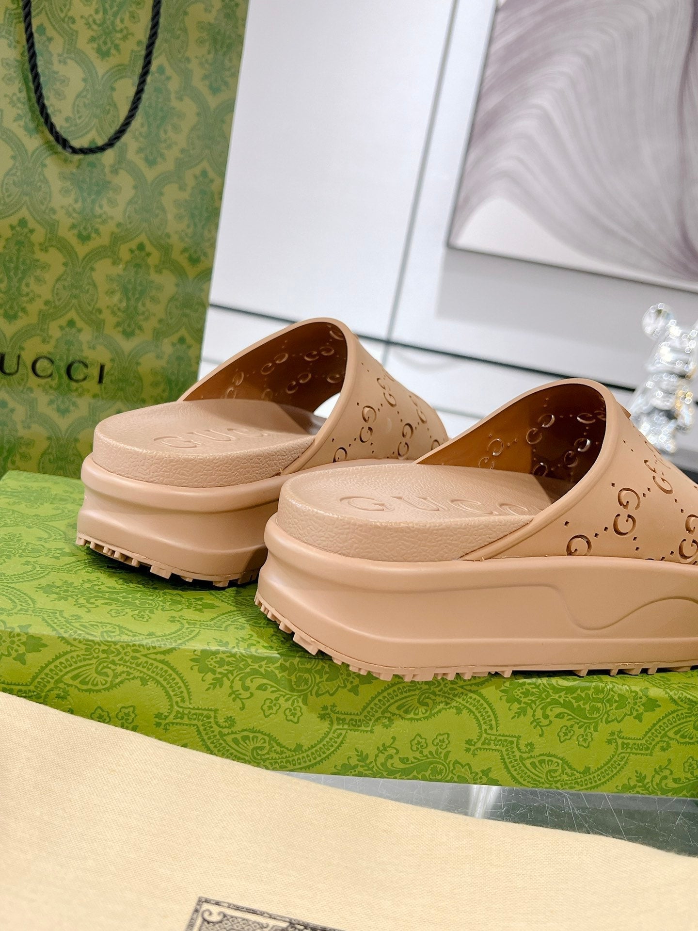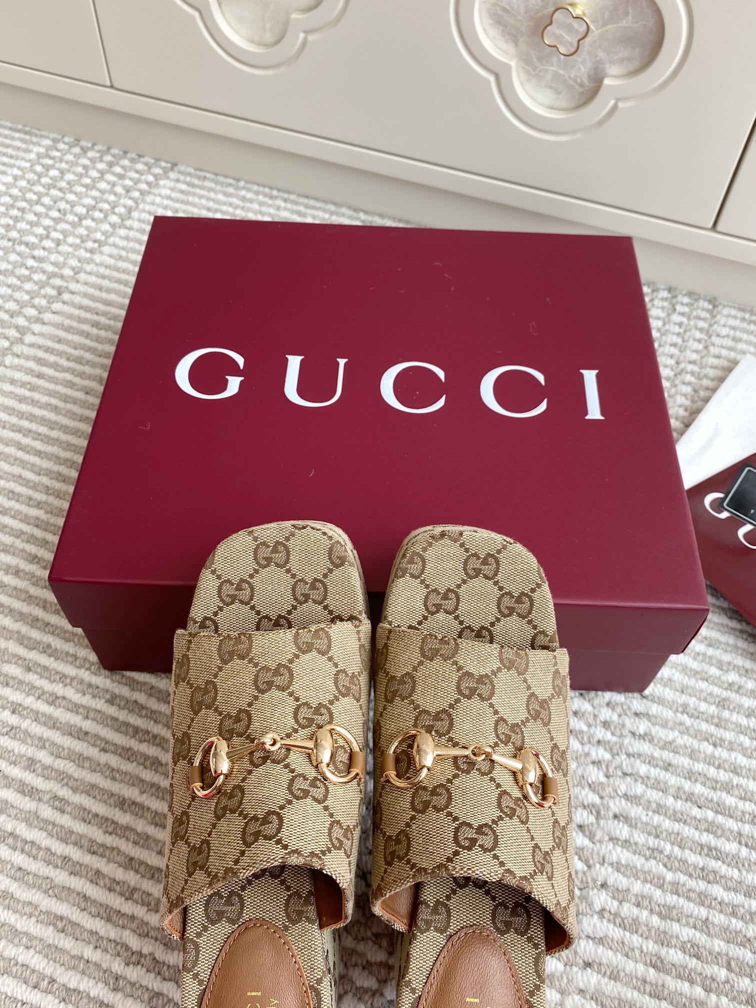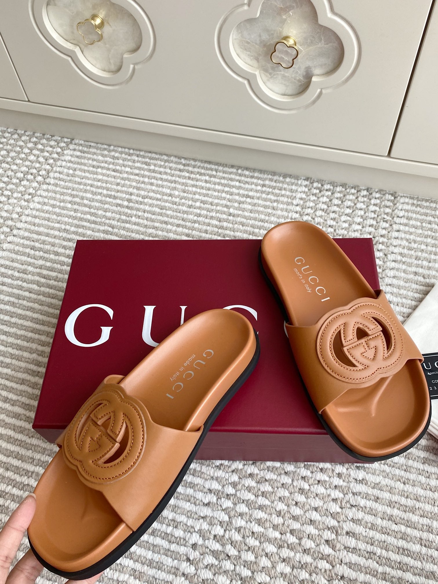 GC 25 Interlocking G 50mm Slide Sandal Monogram Beige Cowhide 292388