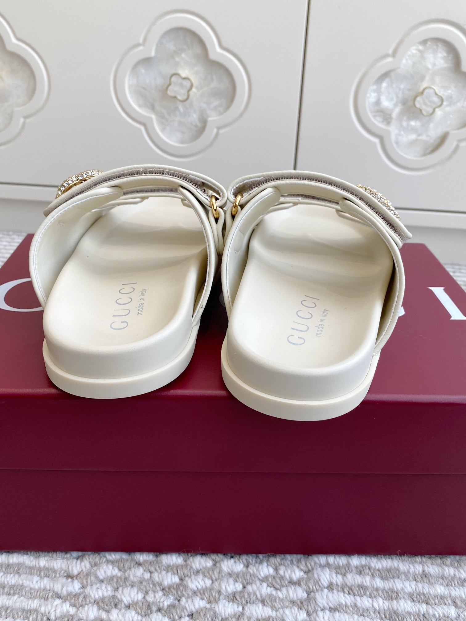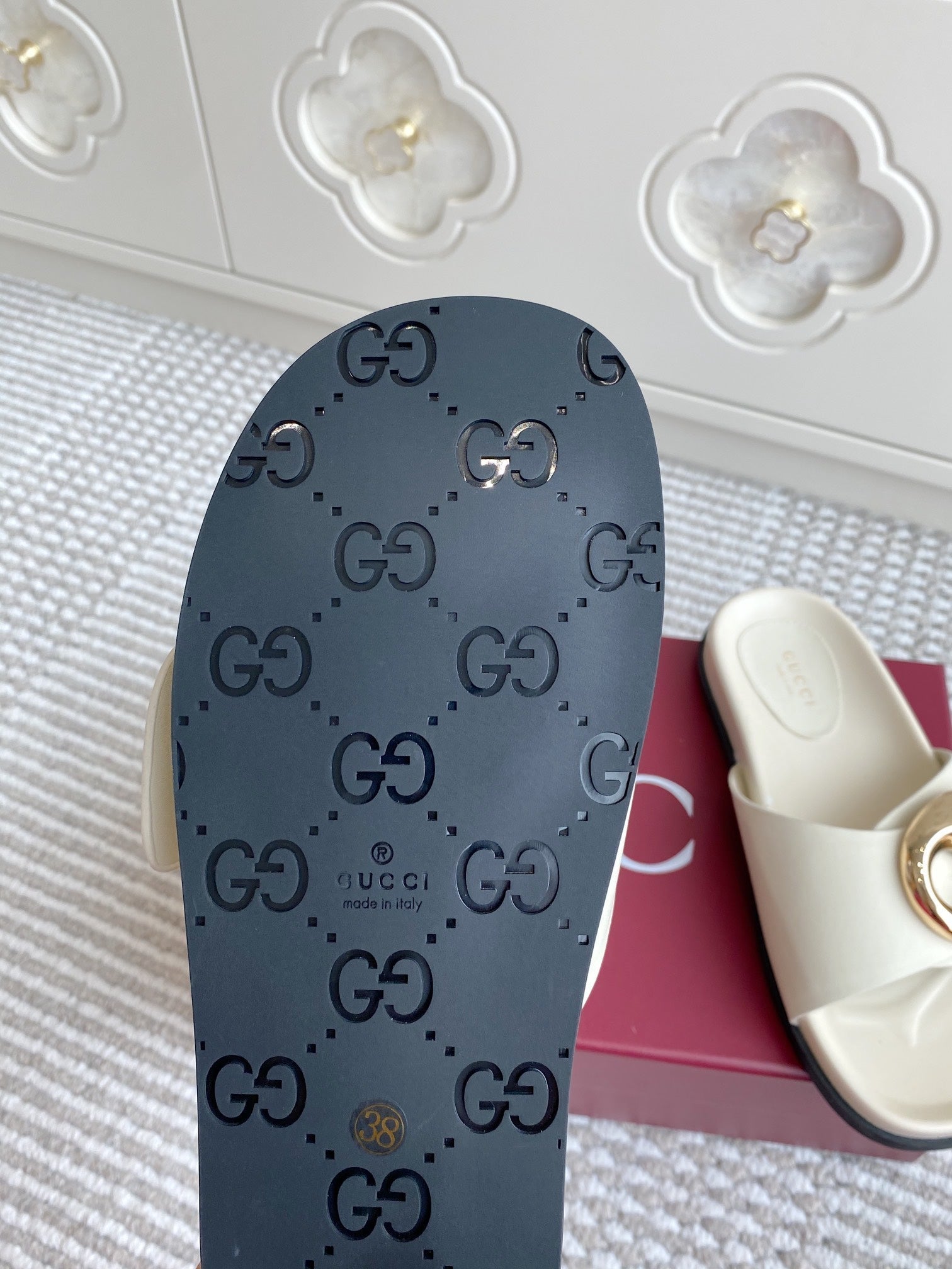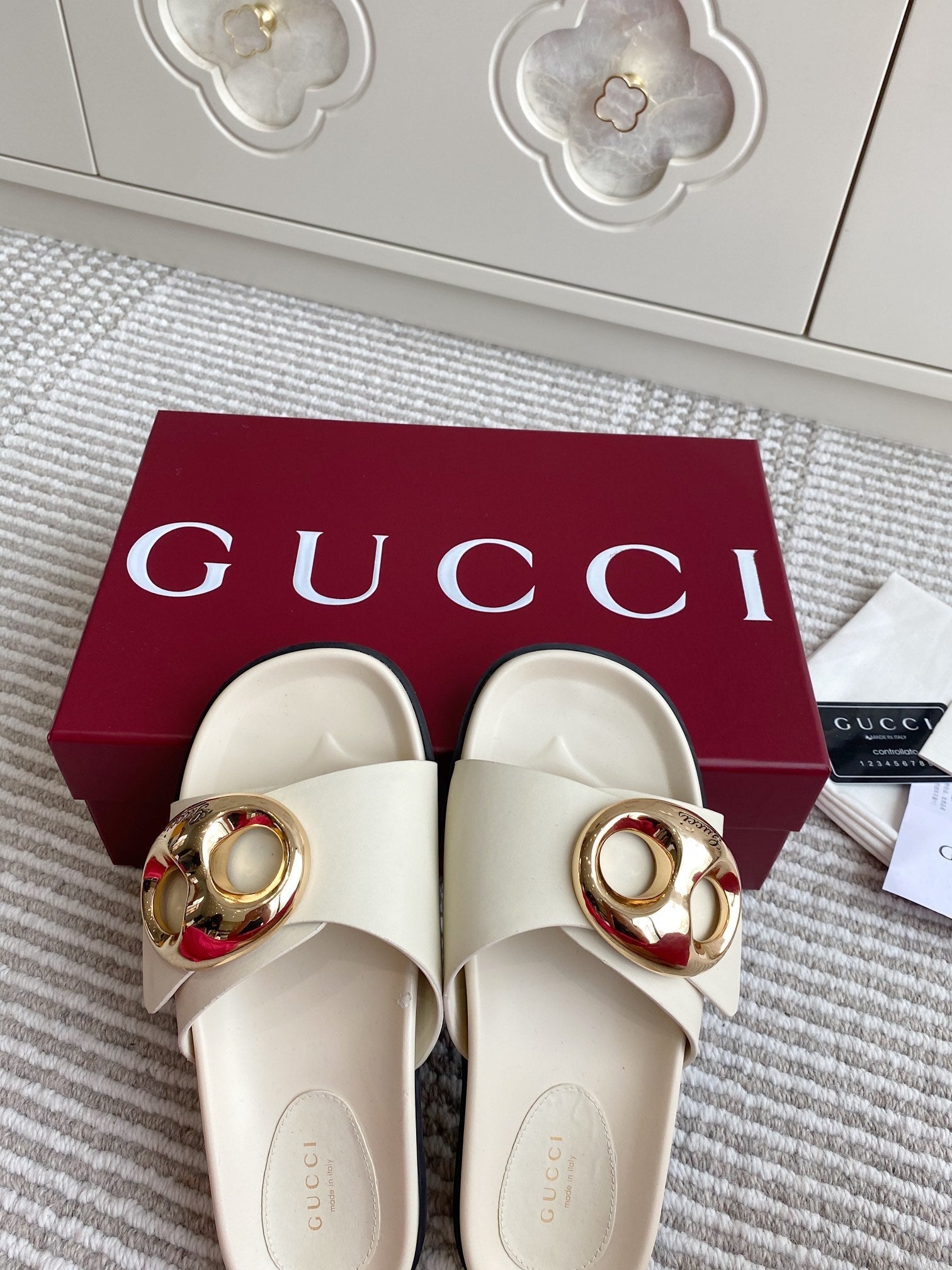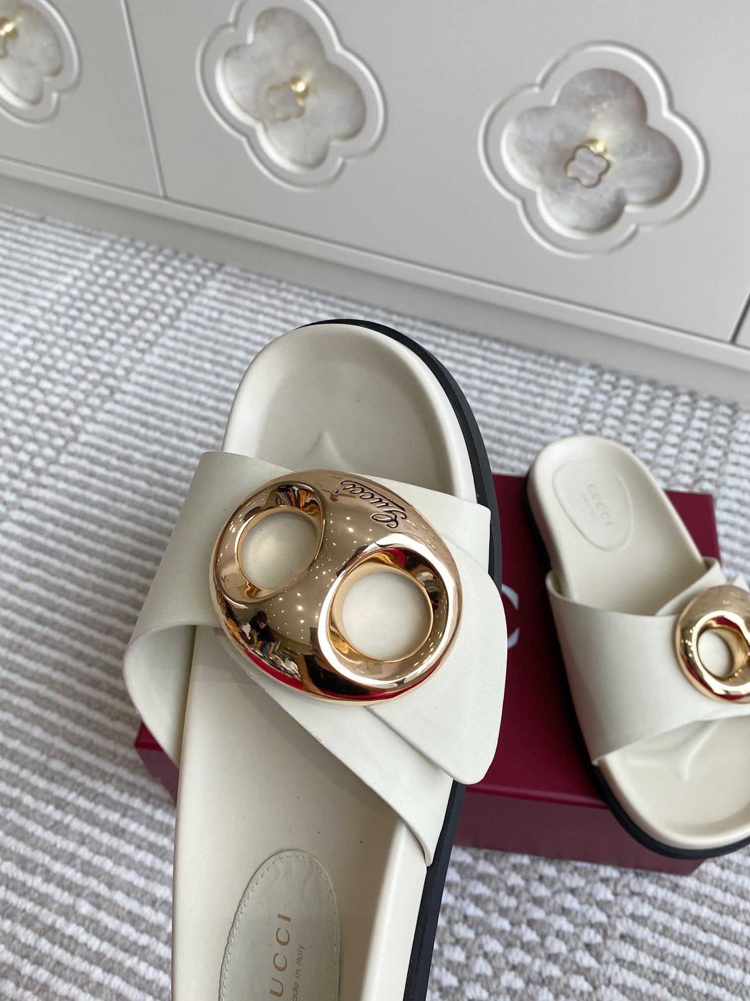 GC 25 Interlocking G 50mm Slide Sandal Ivory Cowhide 292379