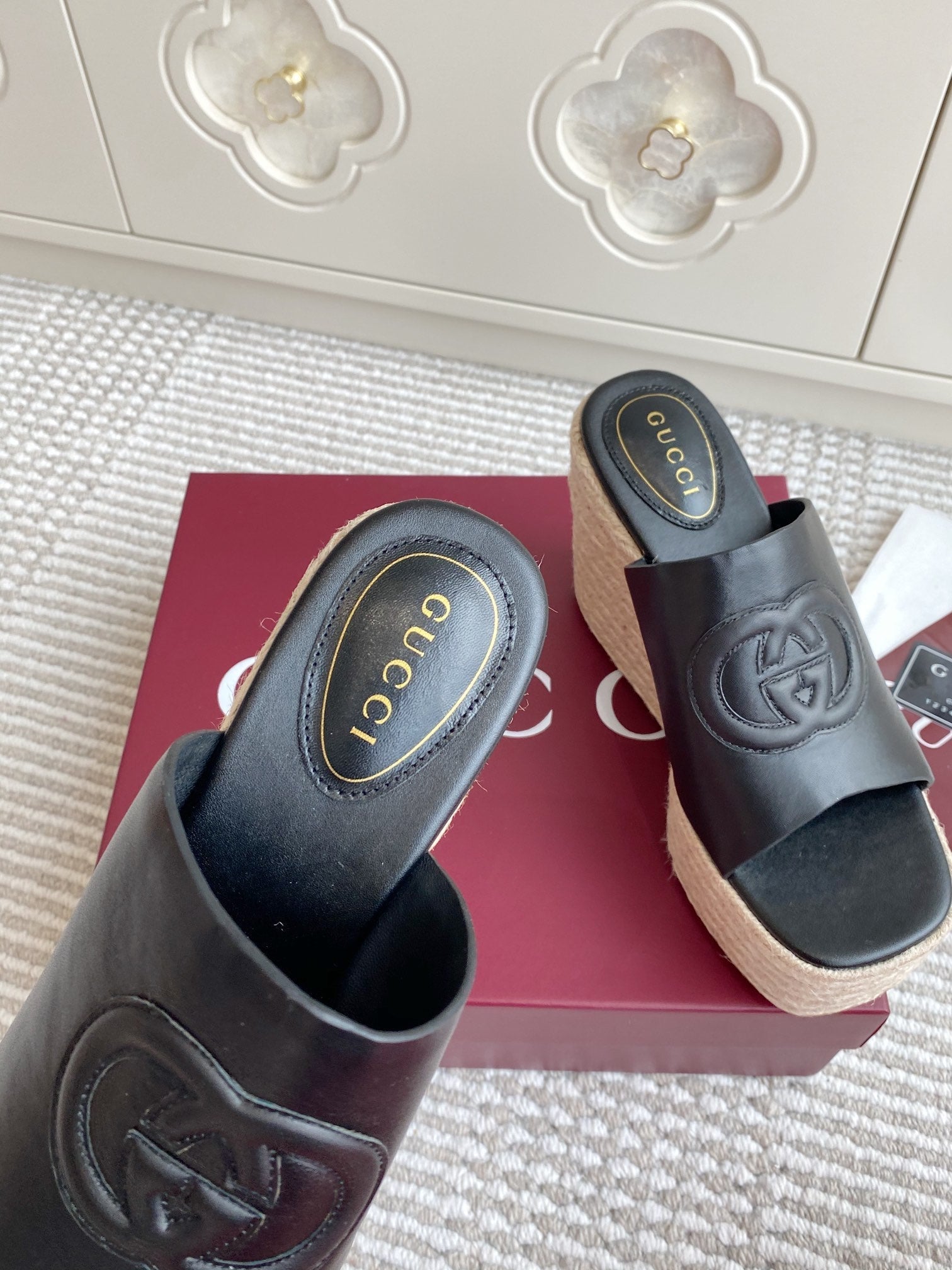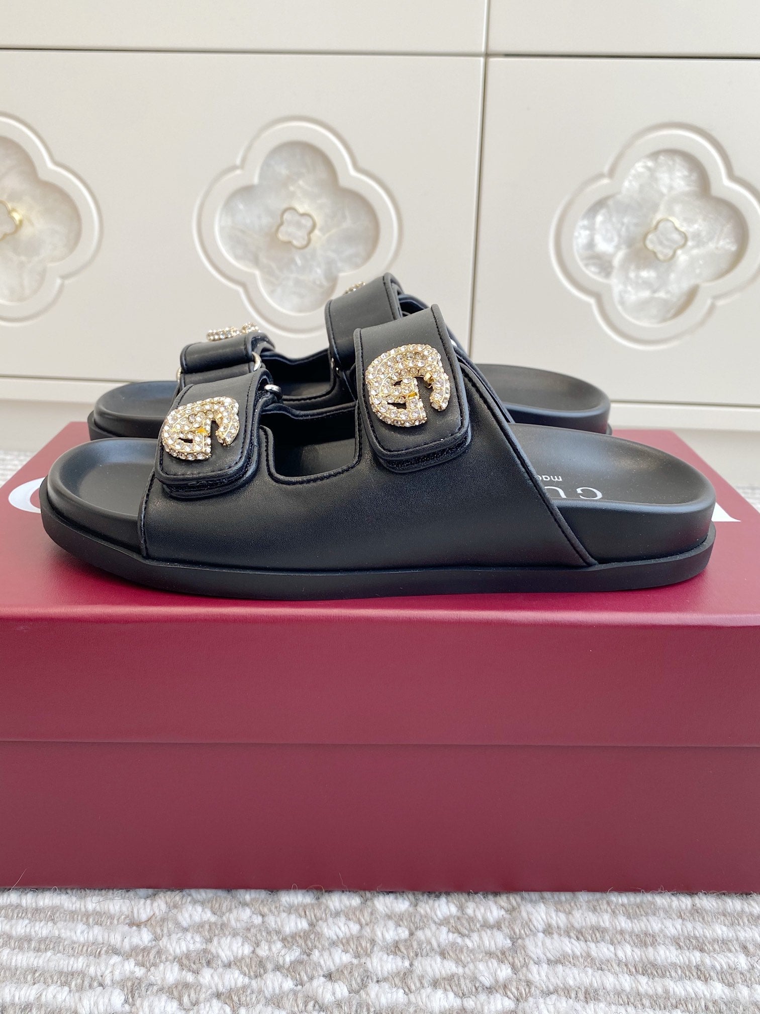GC 25 Interlocking G 50mm Slide Sandal Black Cowhide 292380