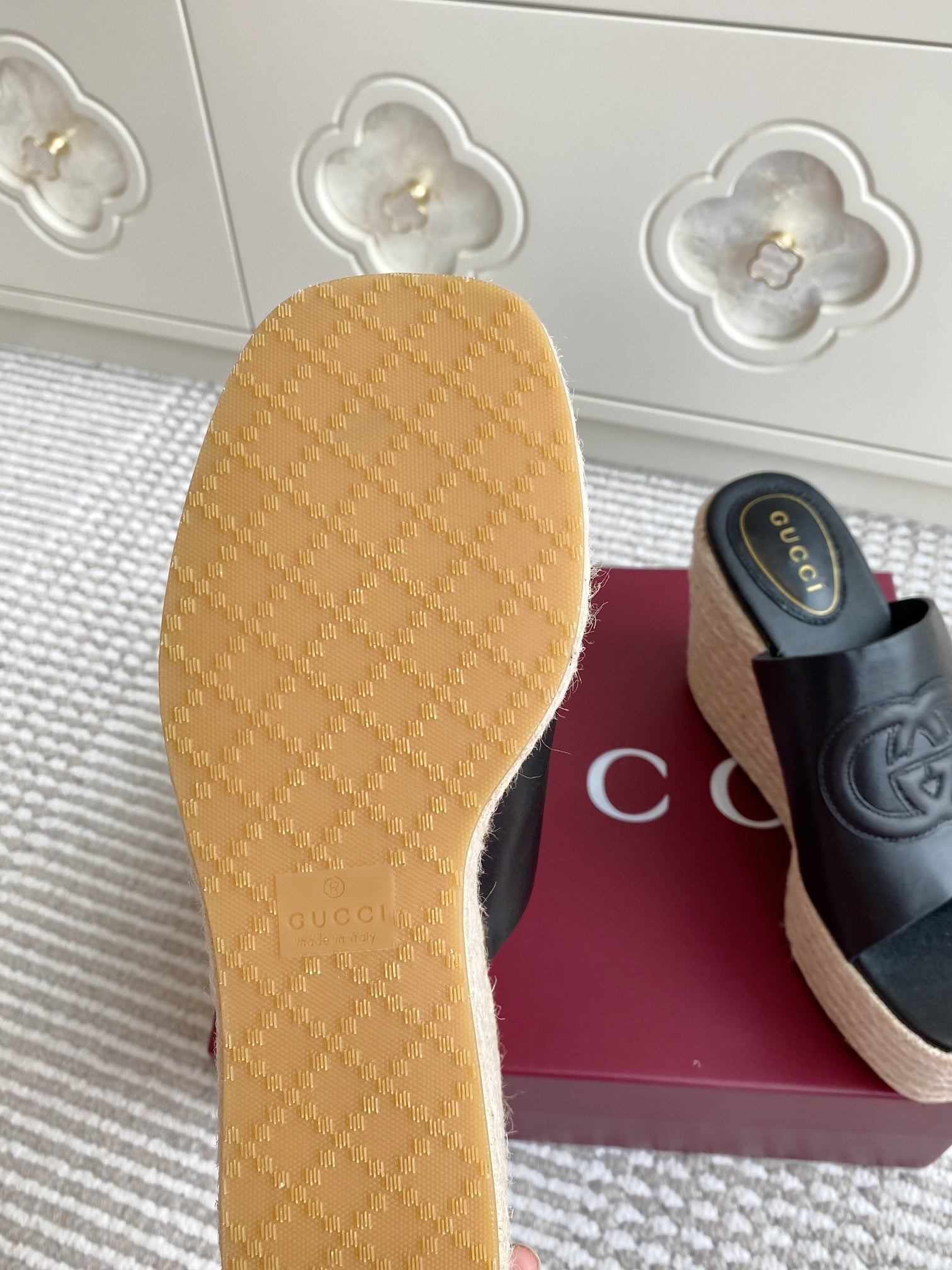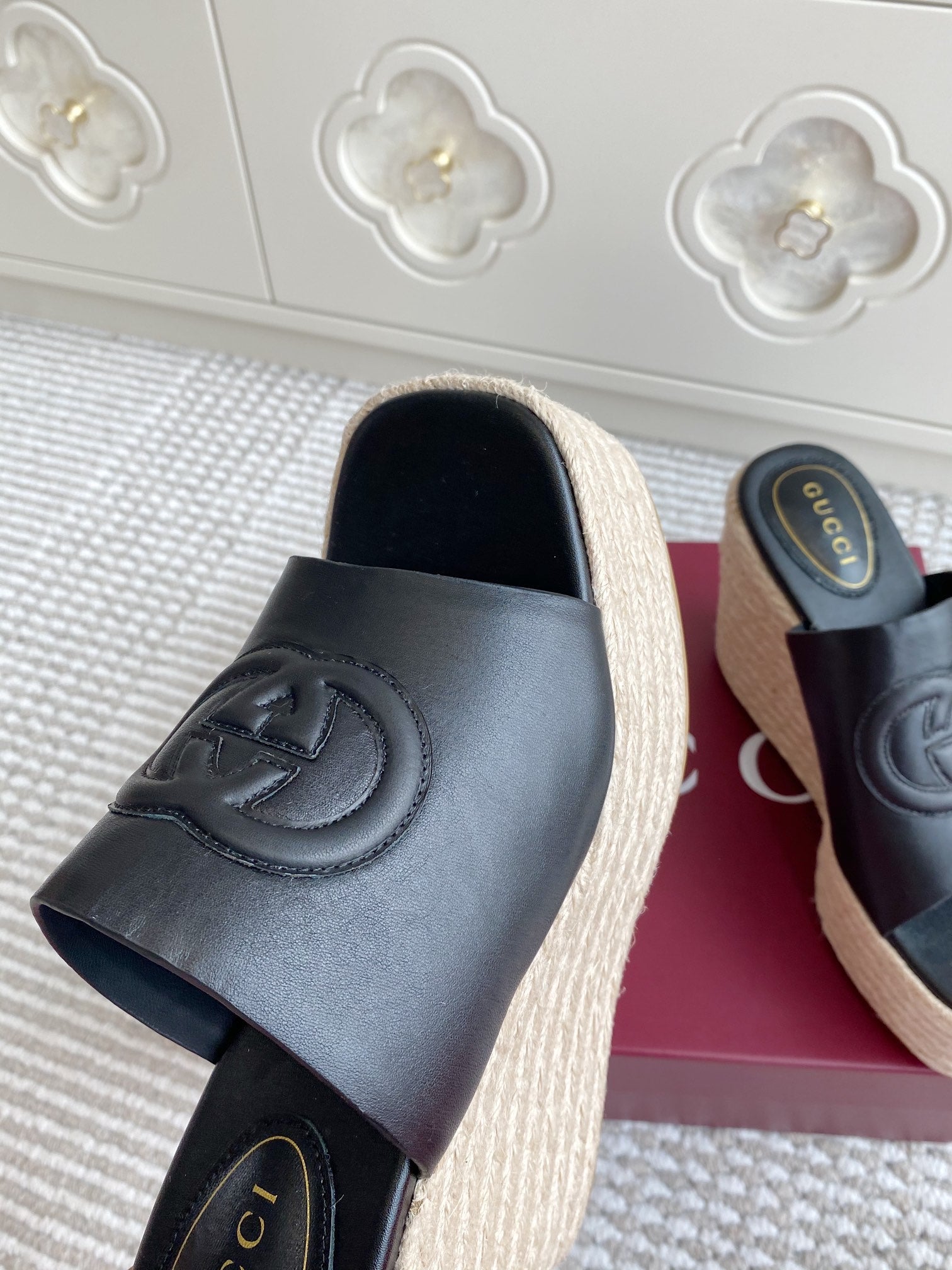 GC 25 Interlocking G 50mm Slide Sandal Jet Black White Cowhide 292381