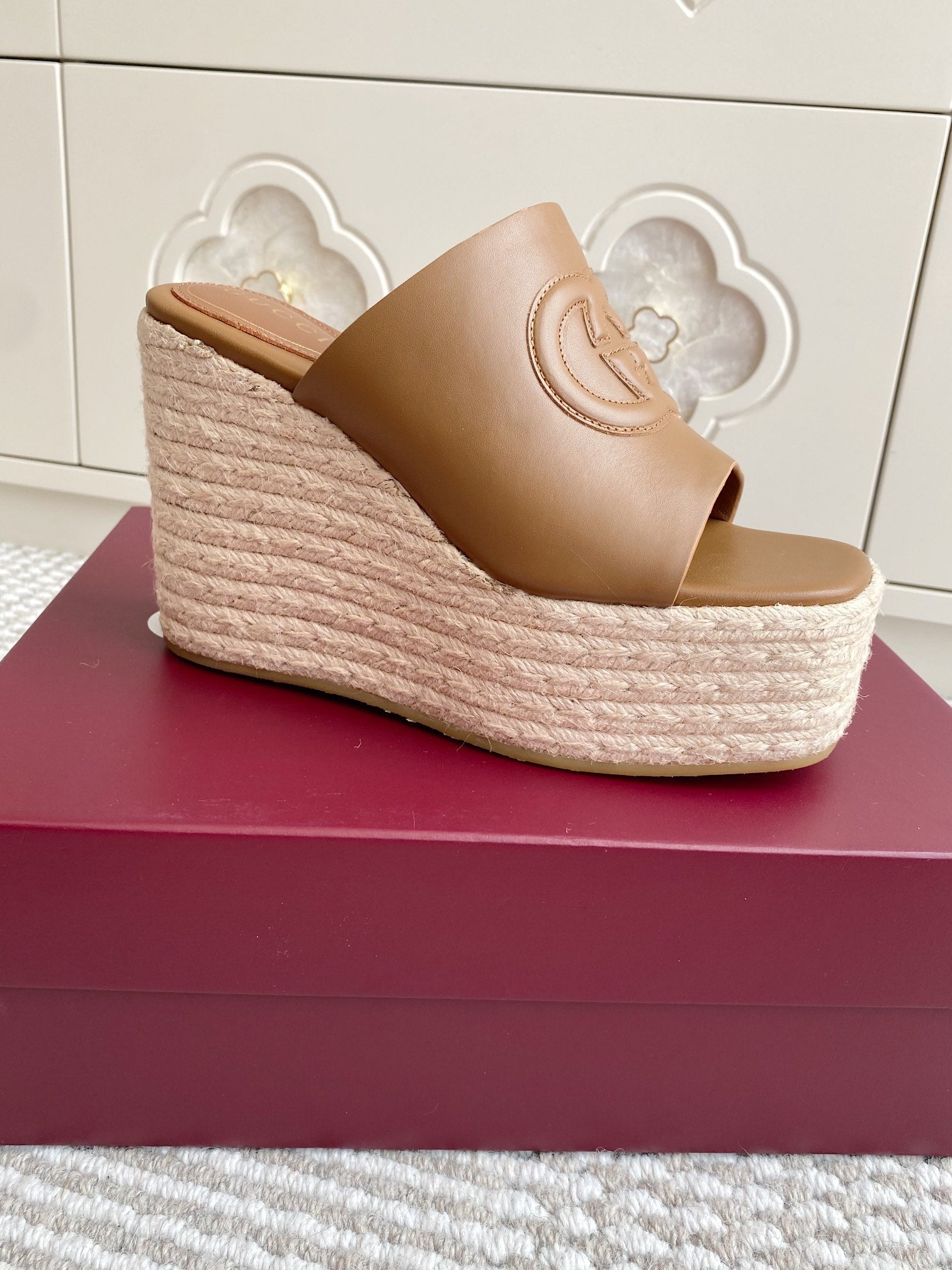 GC 25 Wedge With Horsebit Sandal Beige and Dark Brown Canvas 291029