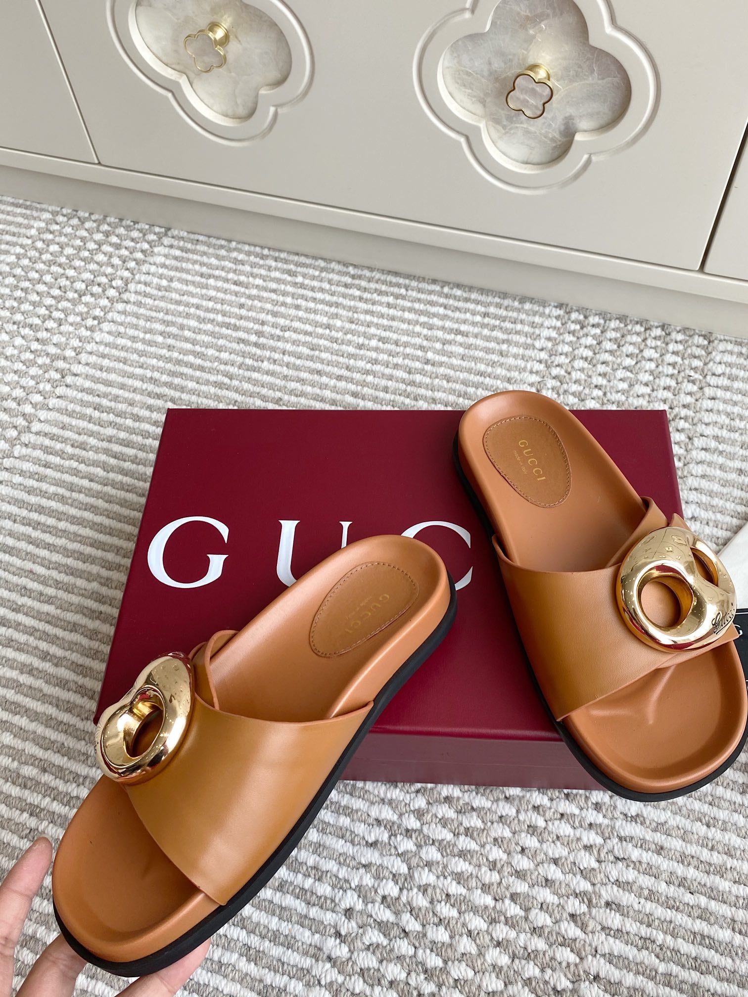 GC 25 50mm Monogram Slide Sandal Brown Cowhide 292395