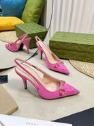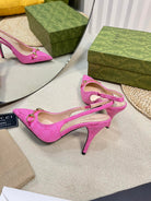 GC Horsebit Slingback Pump 100mm Pink Canvas Sheepskin 294551