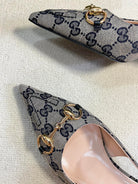GC Horsebit Slingback Pump 50mm Beige mix Blue Canvas Sheepskin 294559