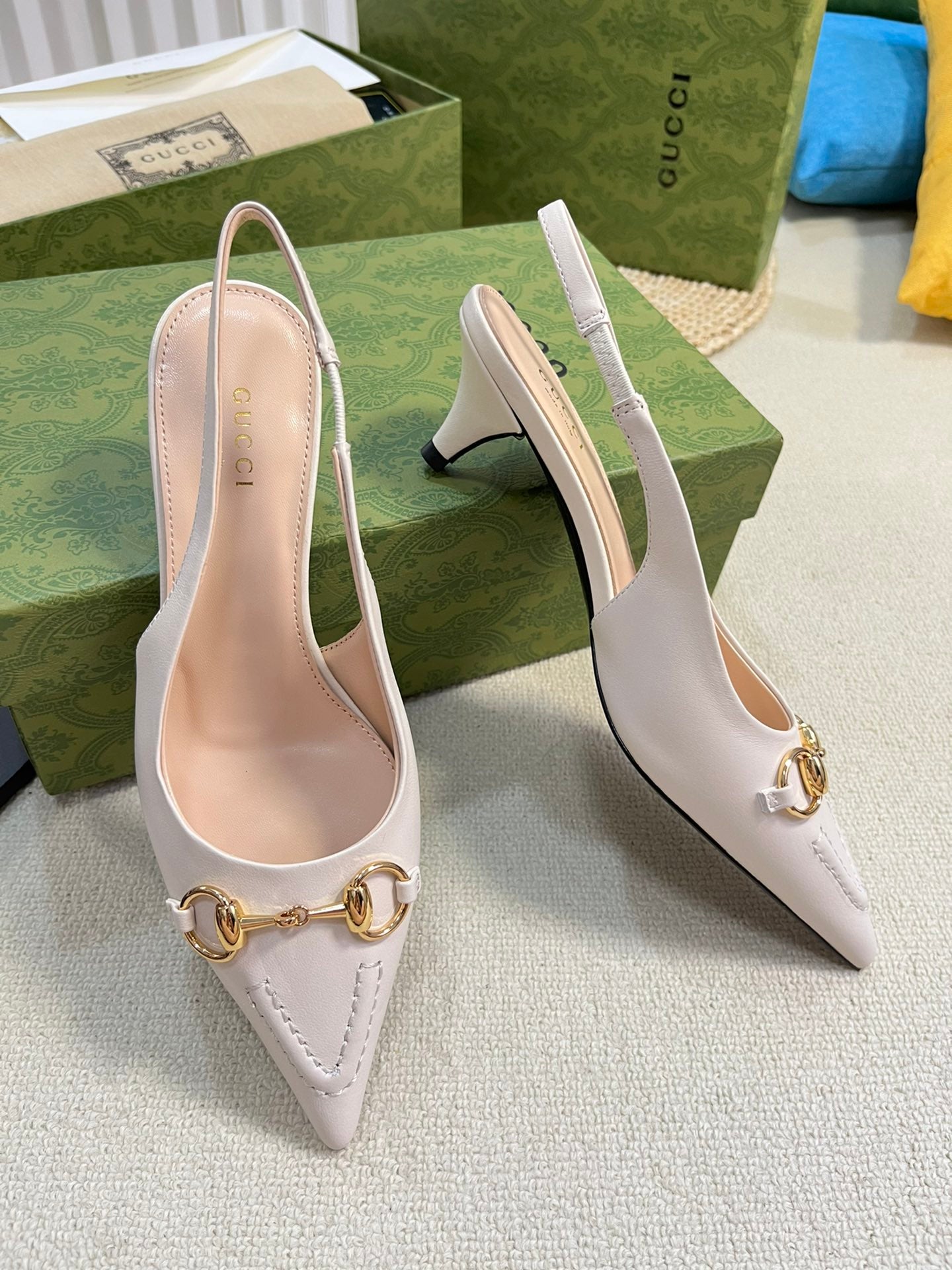 GC Horsebit Slingback Pump 50mm White Sheepskin 294562