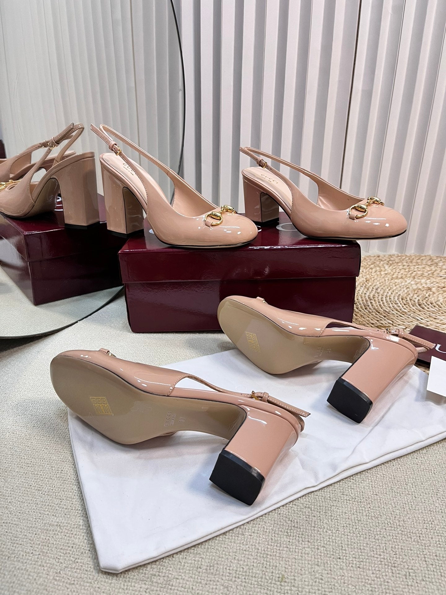 GC Horsebit Slingback 60mm Rose Beige Patent Leather 294588
