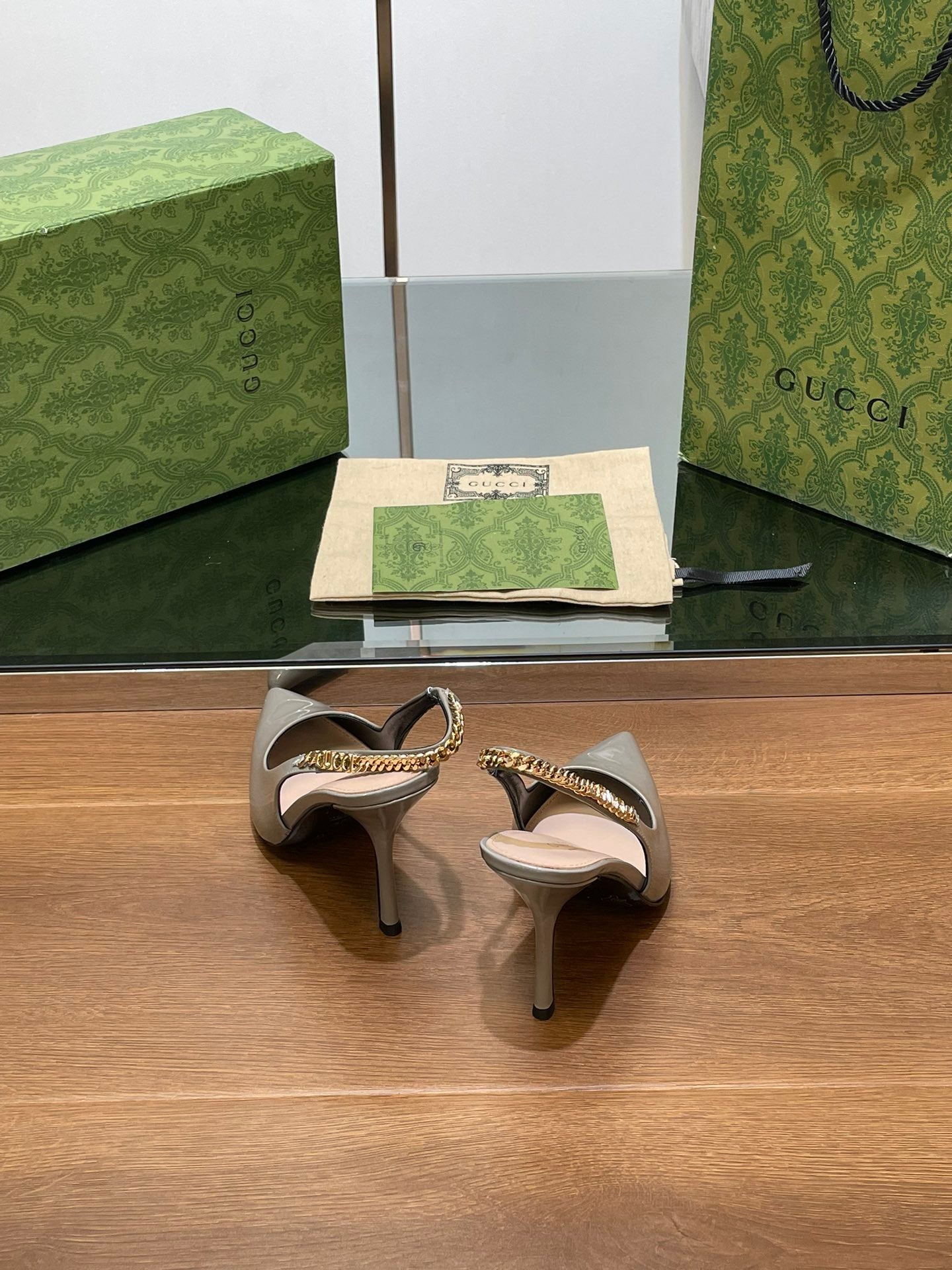 GG HIGH SLINGBACK 10.5 CM IN DOVE GREY GLOSSY CALFSKIN