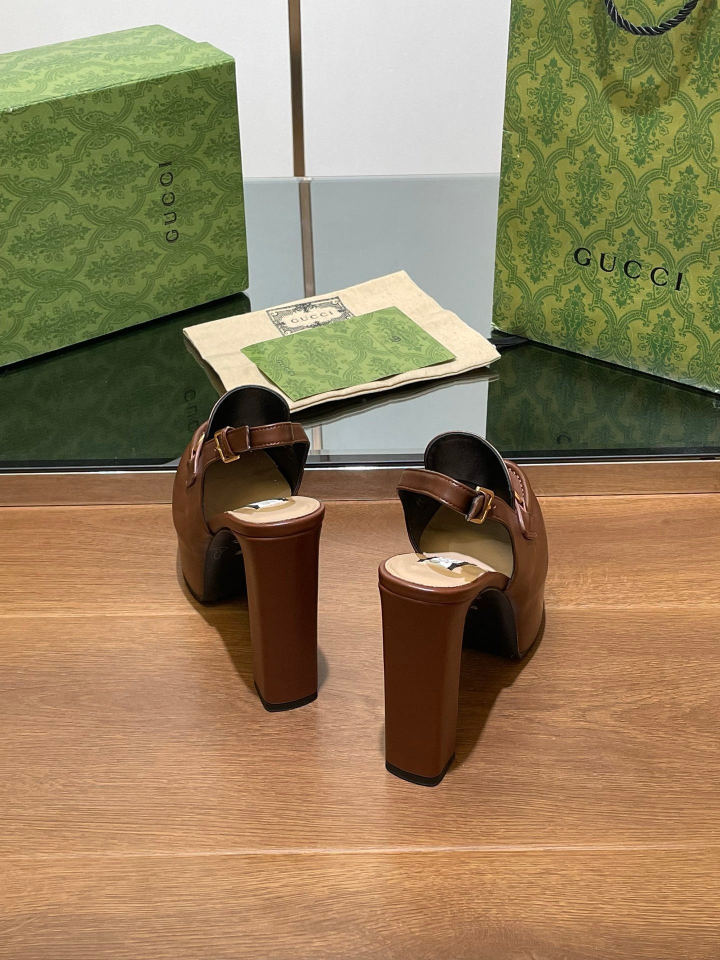 GG WOMEN'S HORSEBIT PLATFORM SLINGBACK IN DARK BROWN CALFSKIN