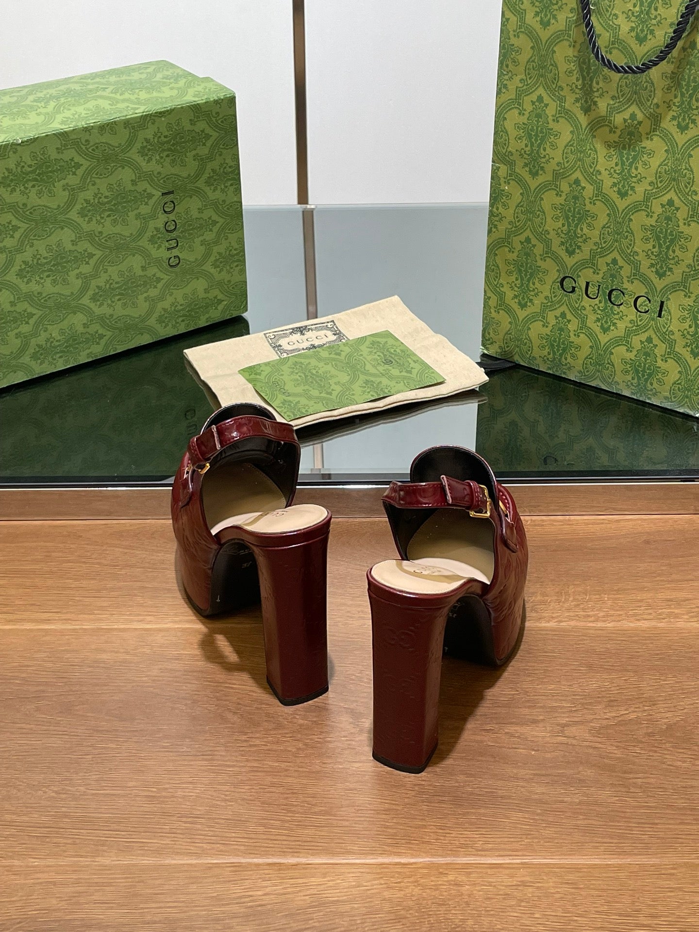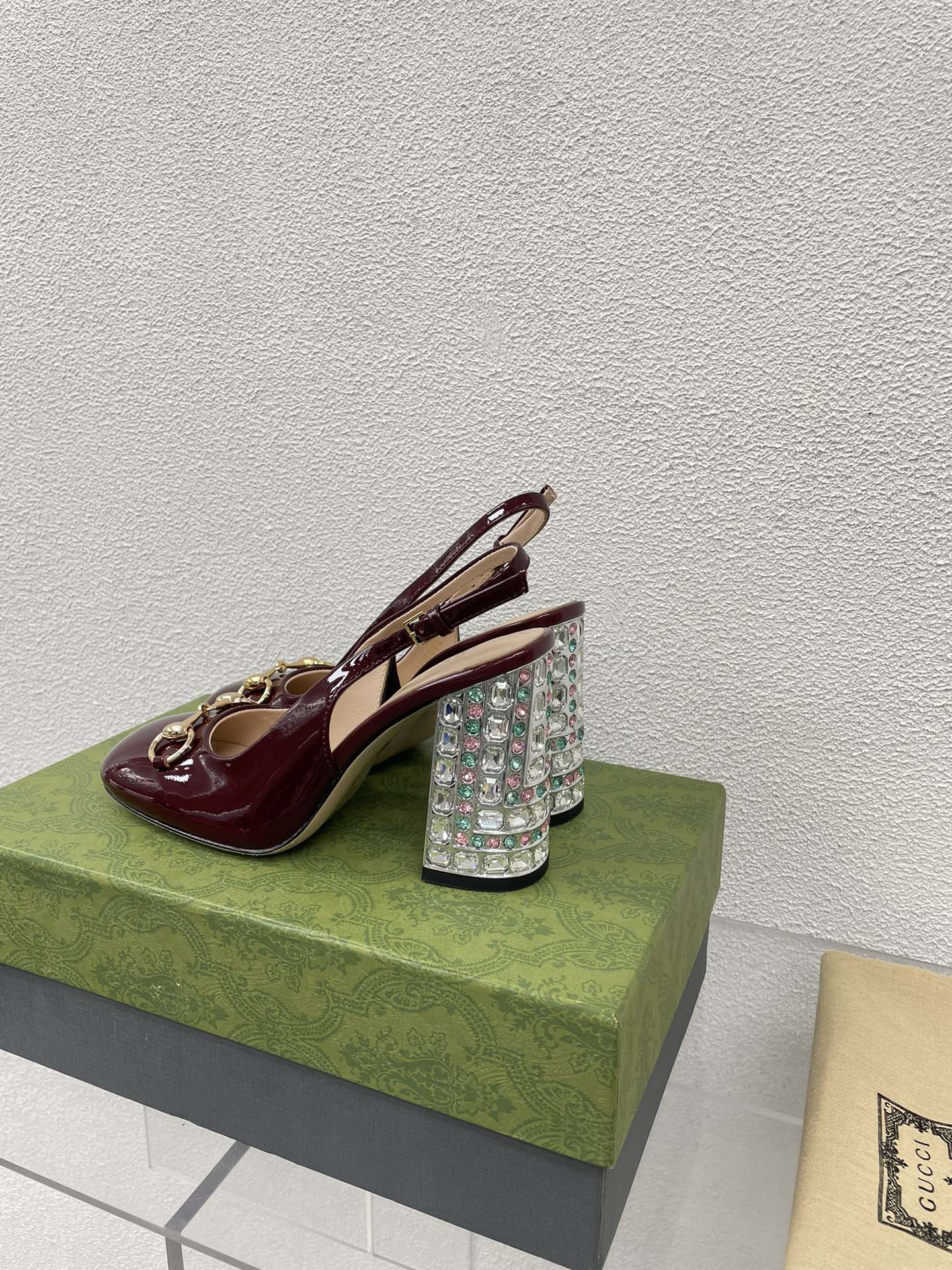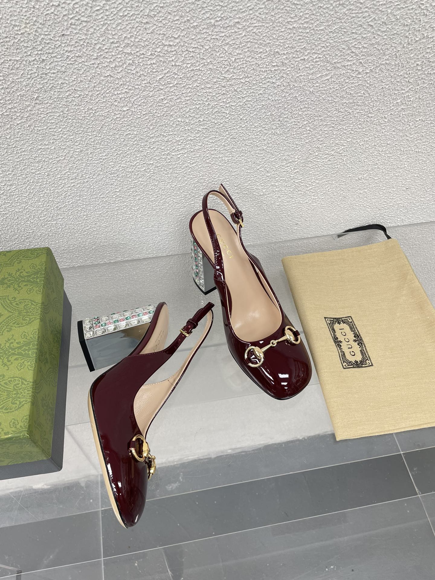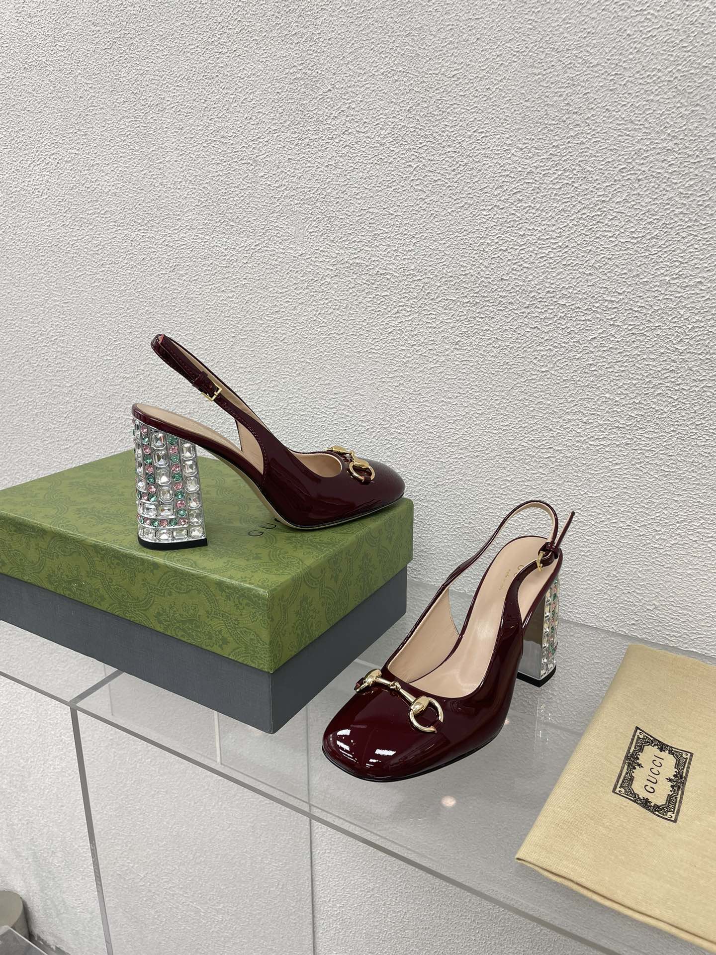 GG HIGH SLINGBACK 10.5 CM IN WINE RED GLOSSY CALFSKIN