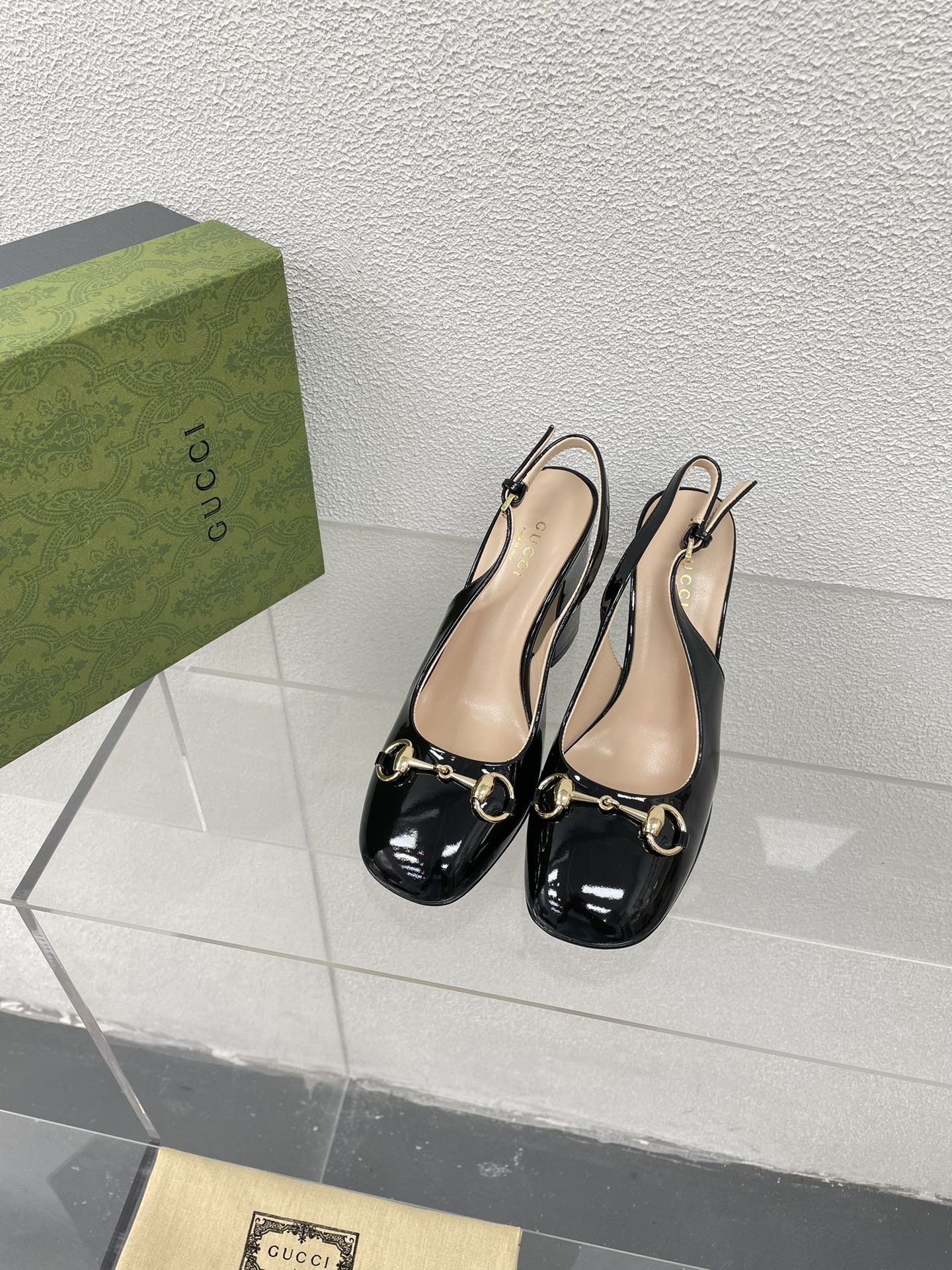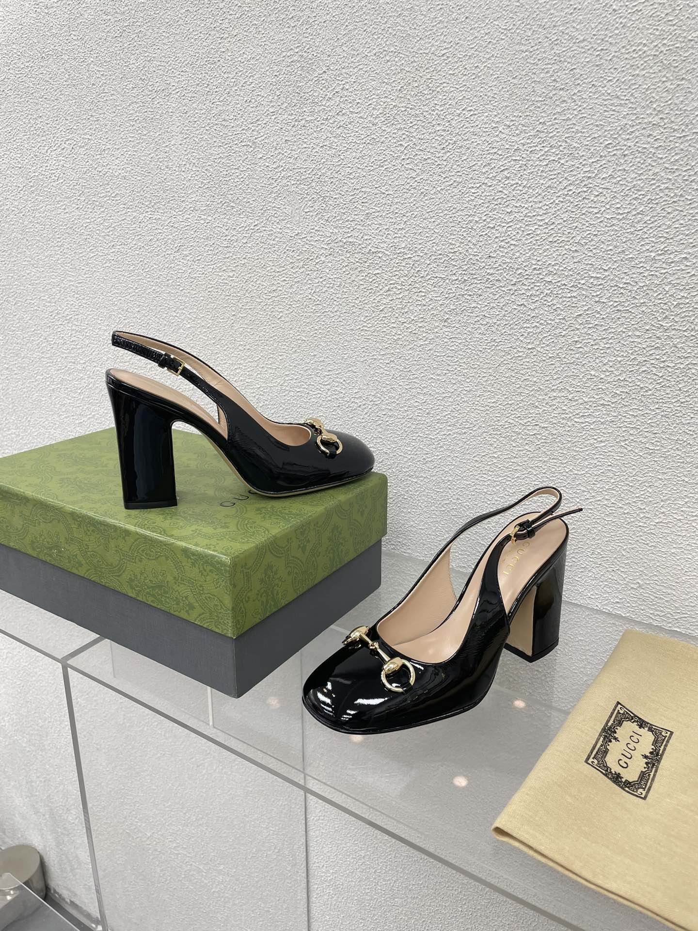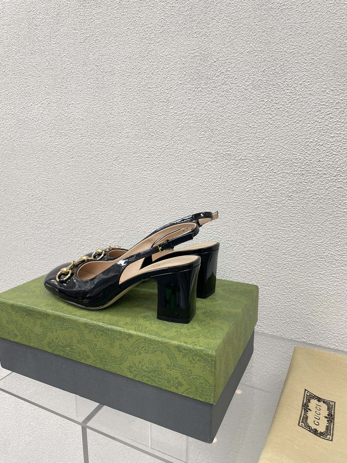GG HIGH SLINGBACK 10.5 CM IN BLACK GLOSSY CALFSKIN