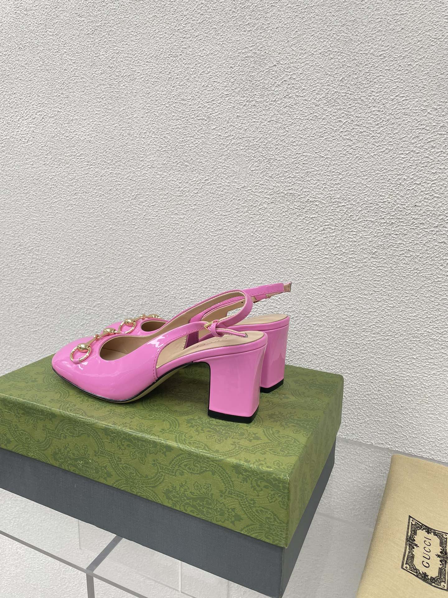 GG WOMEN'S HORSEBIT SLINGBACK 75MM IN FUSICA PINK CALFSKIN