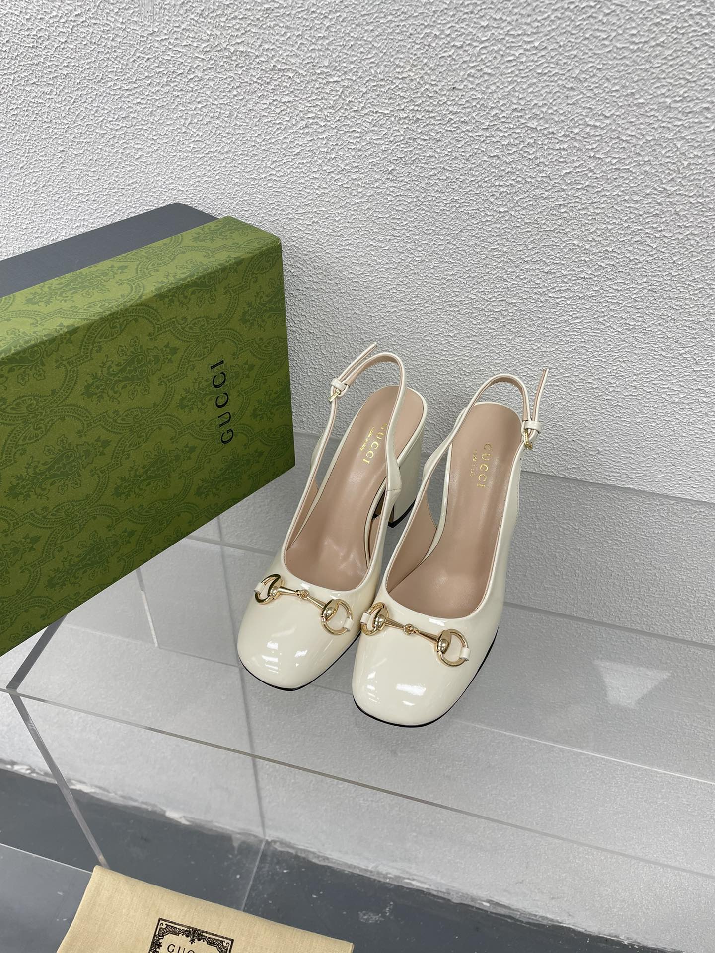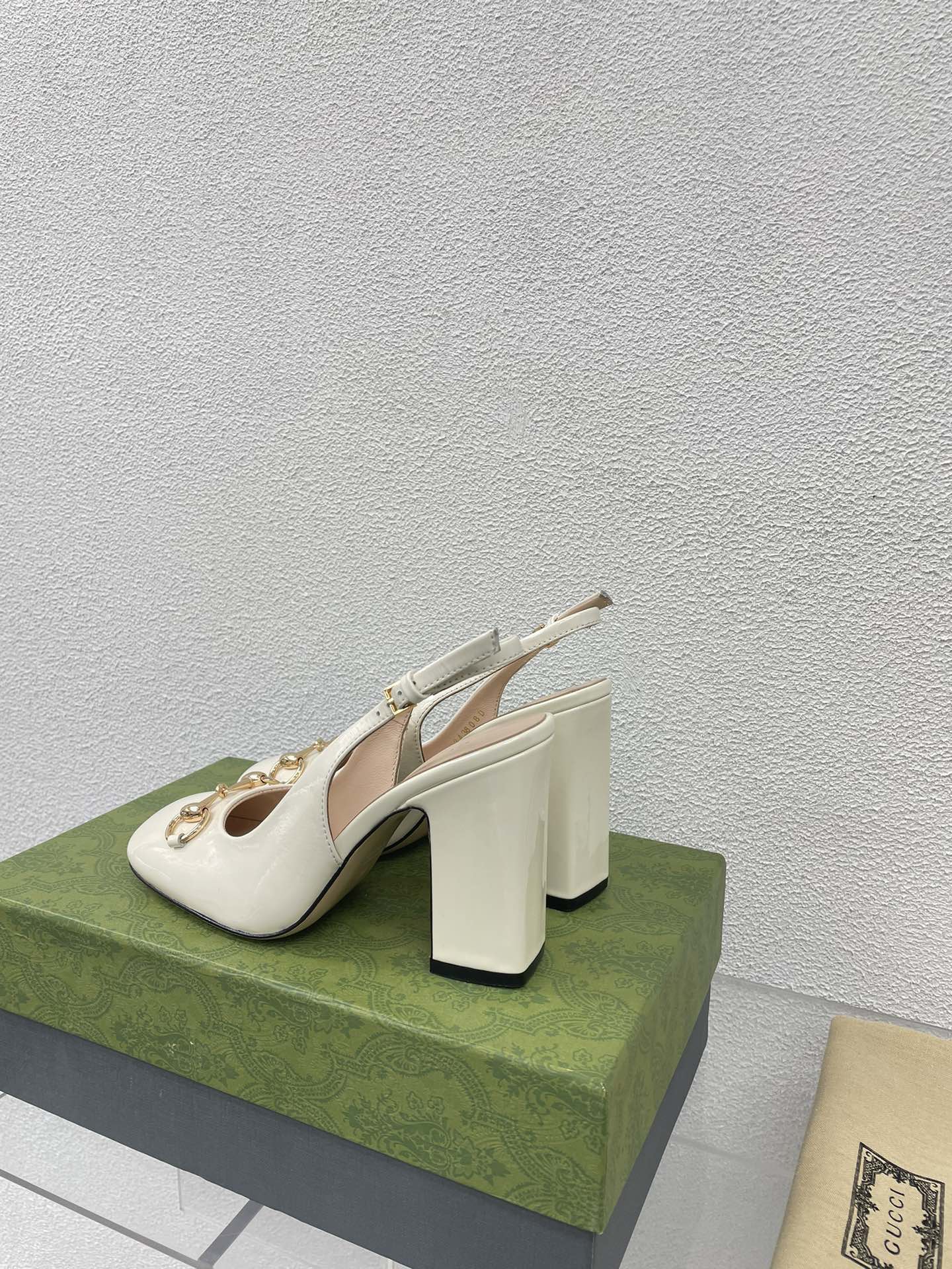 GG HIGH SLINGBACK 10.5 CM IN WHITE GLOSSY CALFSKIN