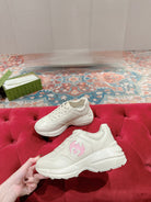 GG RHYTON TRAINER WHITE CALFSKIN WITH PINK LOGO
