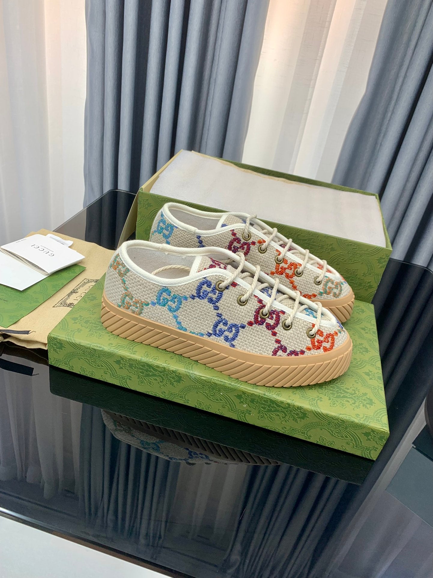 GG UNIQUE SNEAKER THICK-SOLE STRAW COLOR CANVAS