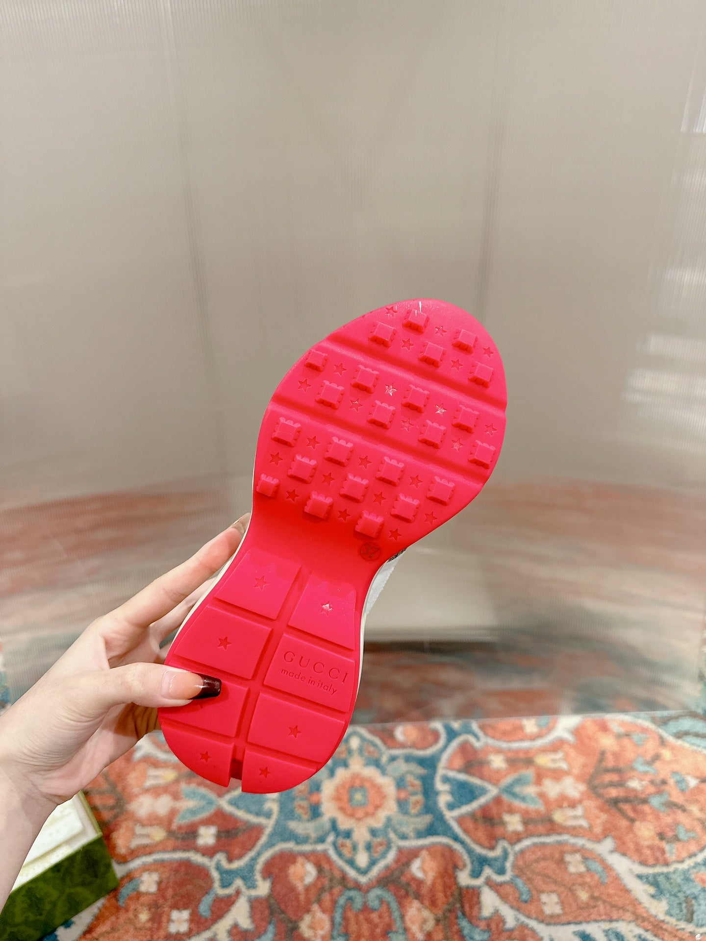 GG RHYTON TRAINER WHITE CALFSKIN WITH PINK LOGO